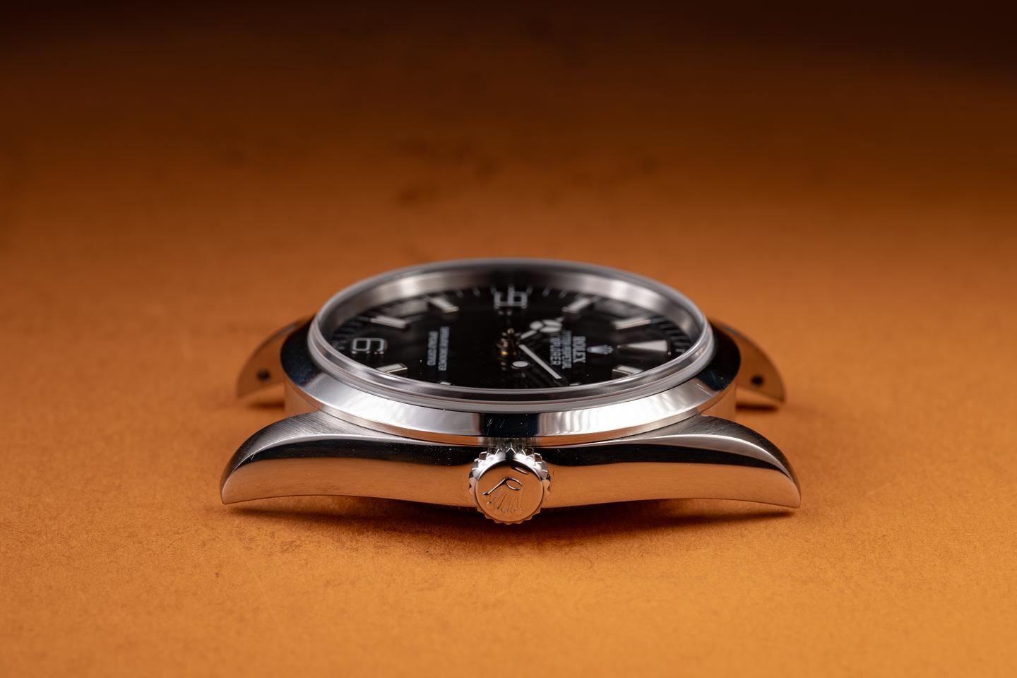 Case: The sharp 36mm case is excellent, showing only light wear from use. The smooth bezel is also in excellent condition, showing only light wear from use.