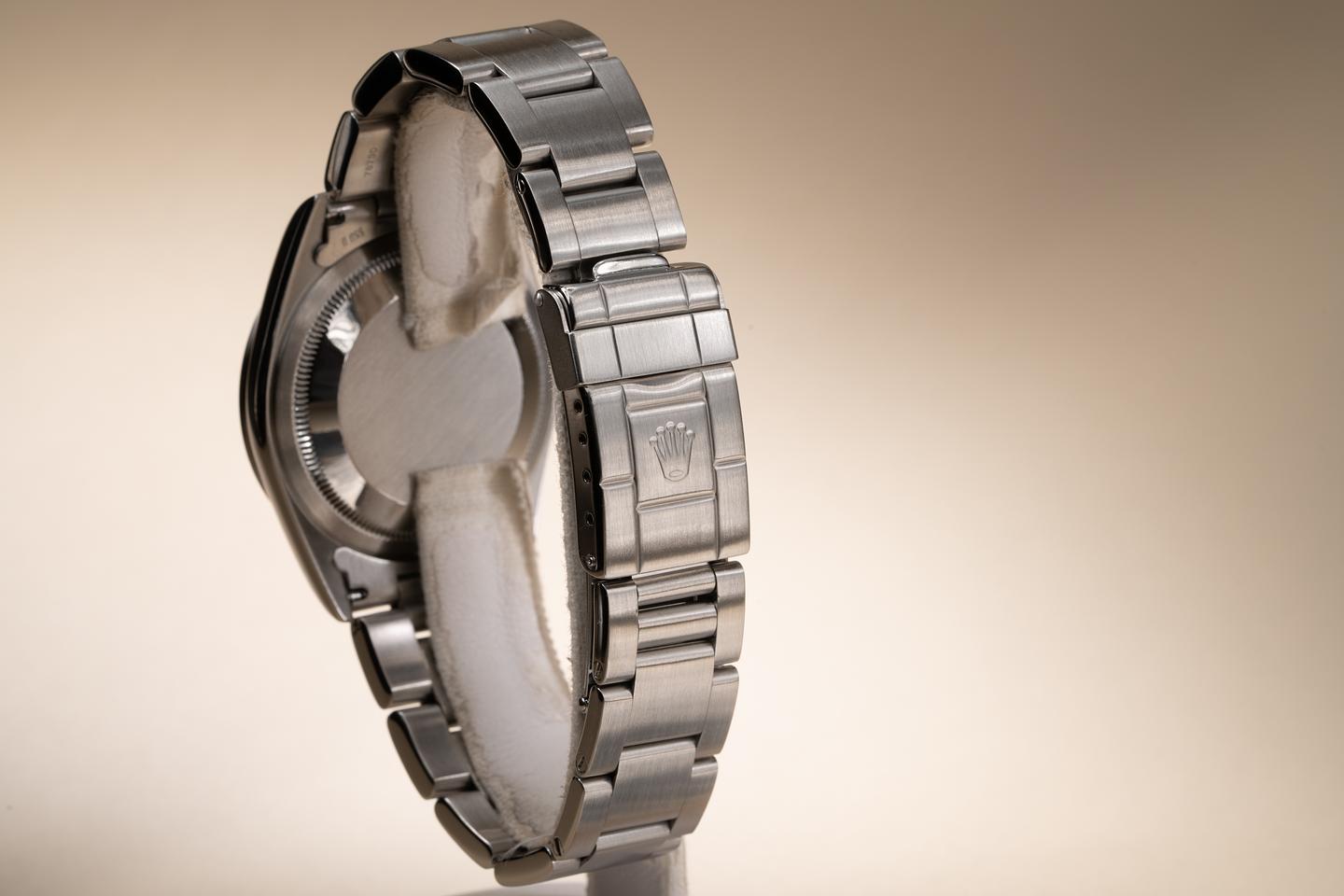 Bracelet: The 12 link oyster bracelet is excellent showing only light stretch for its age. The clasp is stamped with a matching 1999 date code.