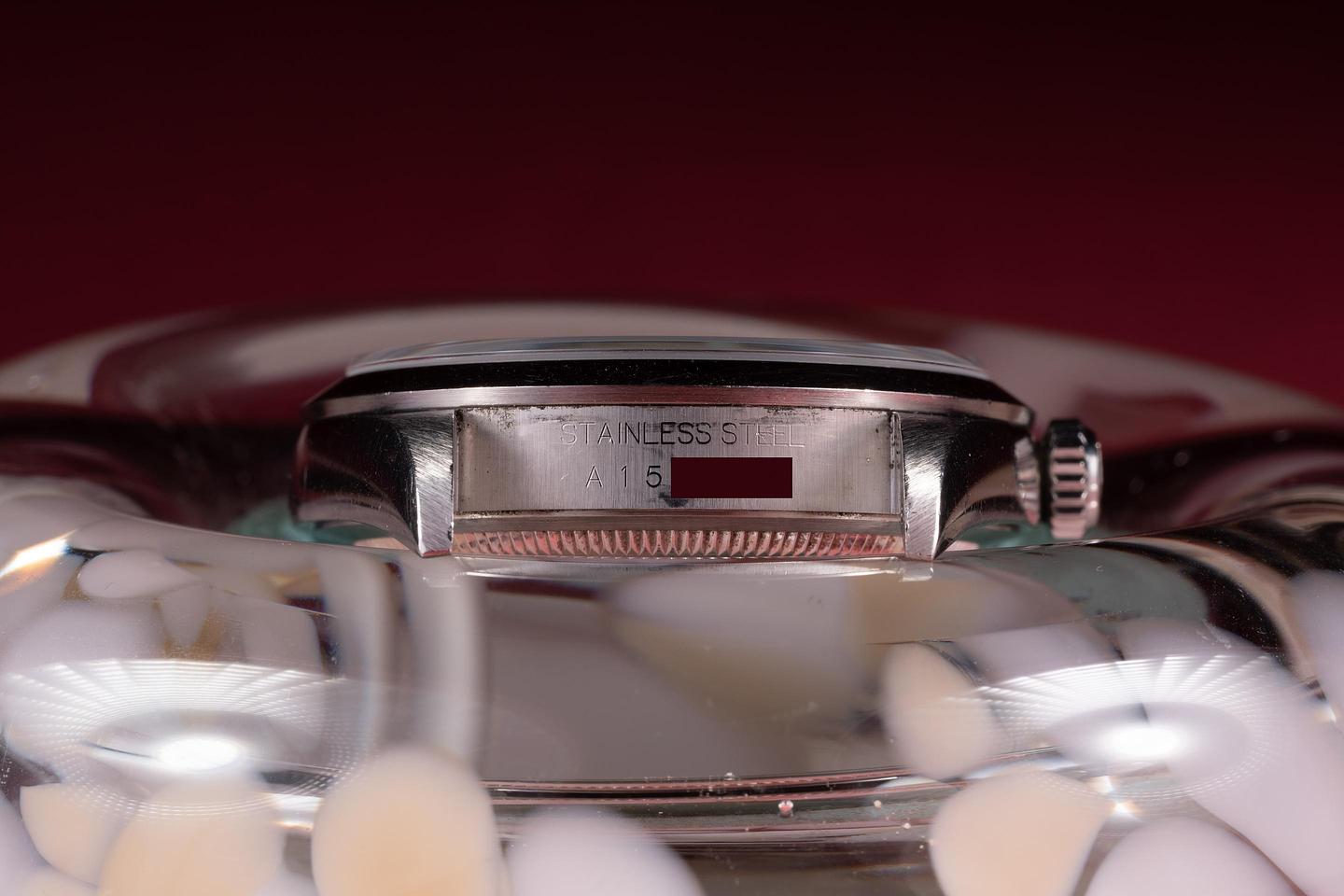 Case: The sharp 36mm case is excellent showing only light wear from use. The smooth stainless bezel is also in excellent condition showing only light wear from use.