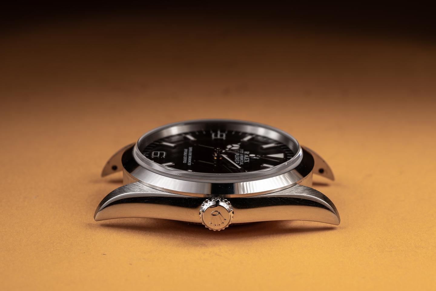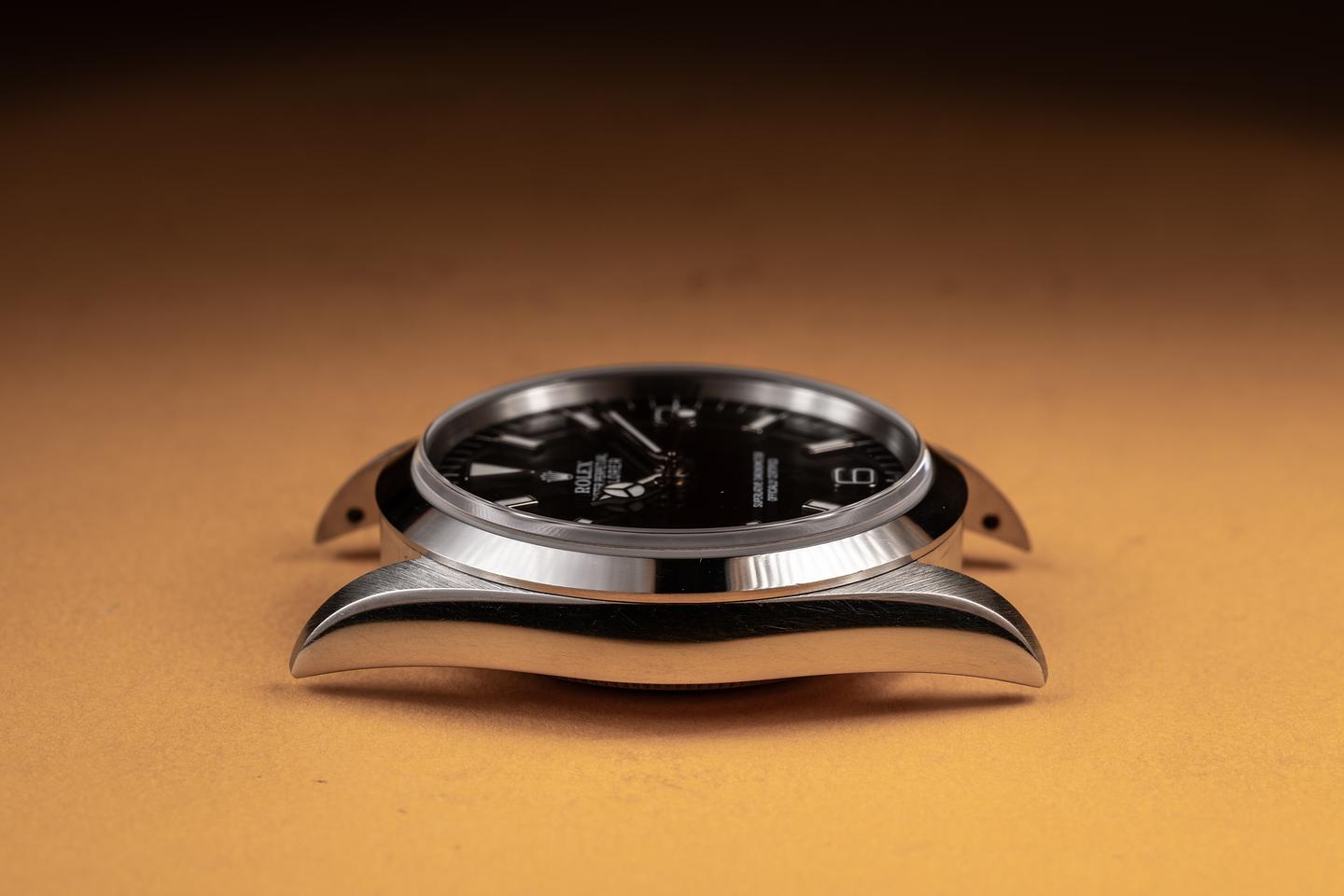 Case: The thick, sharp, and even 36mm case is excellent, showing only very light wear from use. The smooth bezel is also in excellent condition, showing only very light wear from use.