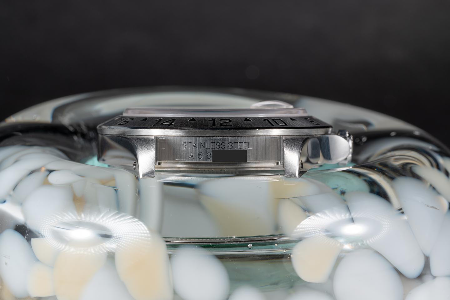 Case: The recently polished case is excellent showing sharp prominent bevels and only very light wear. The stainless bezel is also in excellent condition showing a sharp well defined sunburst finish and only very light wear.