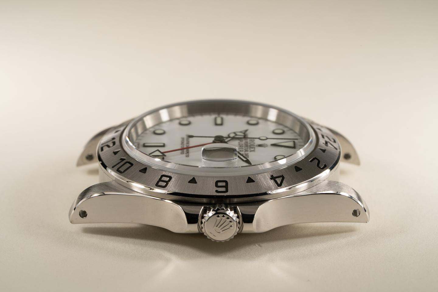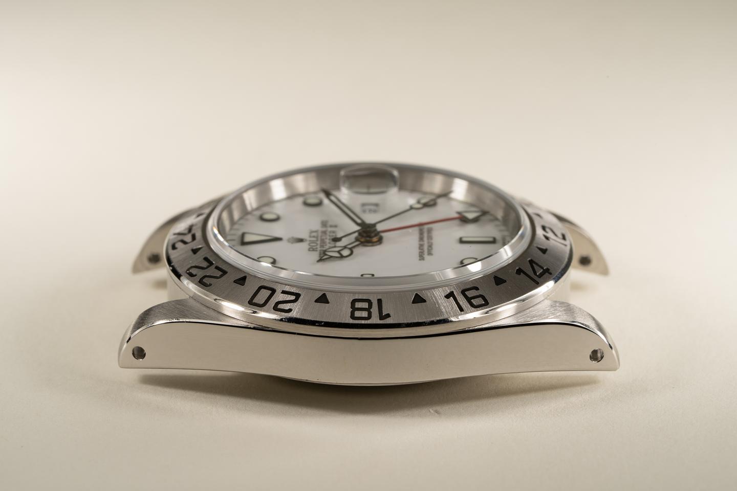 Case: Excellent case that has just returned from polishing and features sharp prominent bevels. The stainless bezel is also excellent with a sharp and well defined sunburst finish.