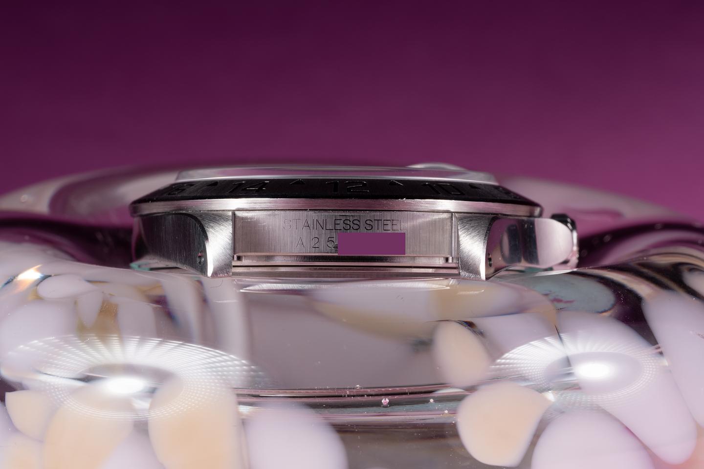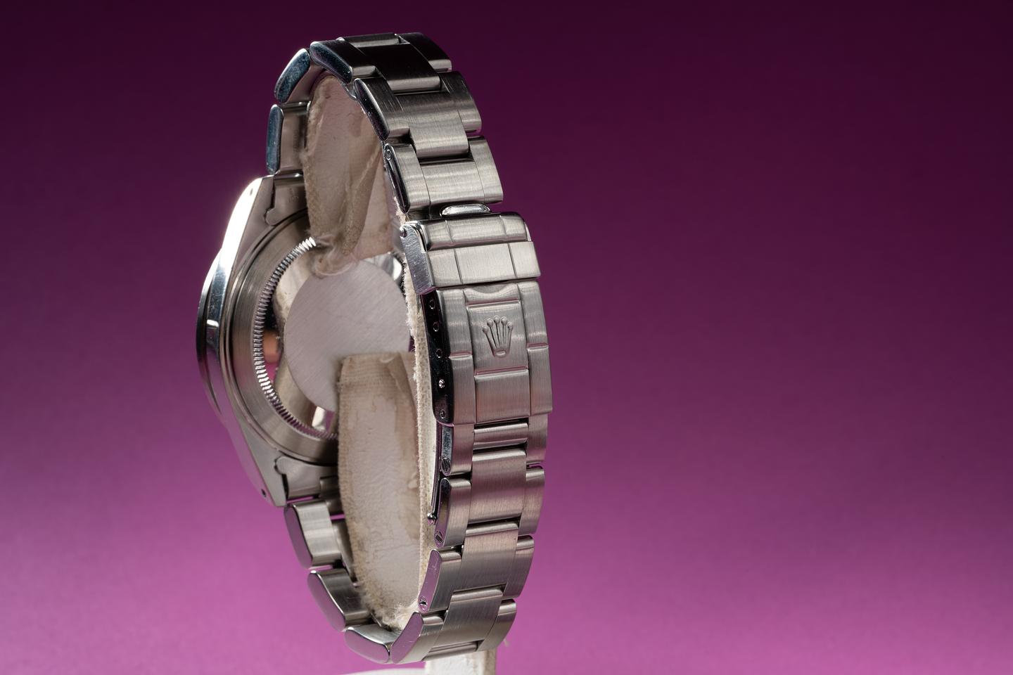 Bracelet: The 12 link Oyster bracelet is excellent showing only very light stretch for its age. The clasp is stamped with a matching 1999 date code.