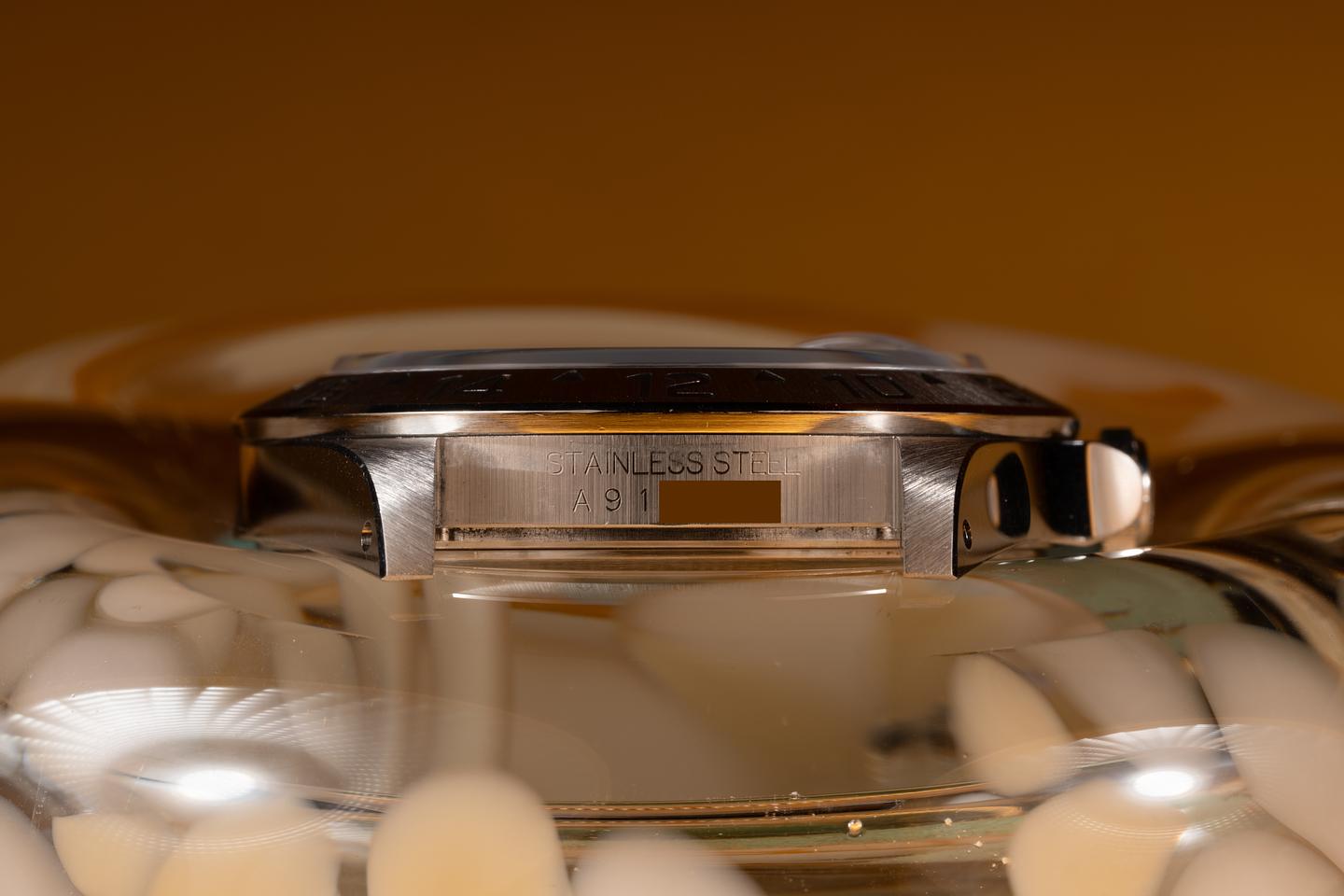 Case: The thick and even case is excellent showing sharp bevels and only light wear from use. The stainless bezel is also in excellent condition showing only light wear from use.