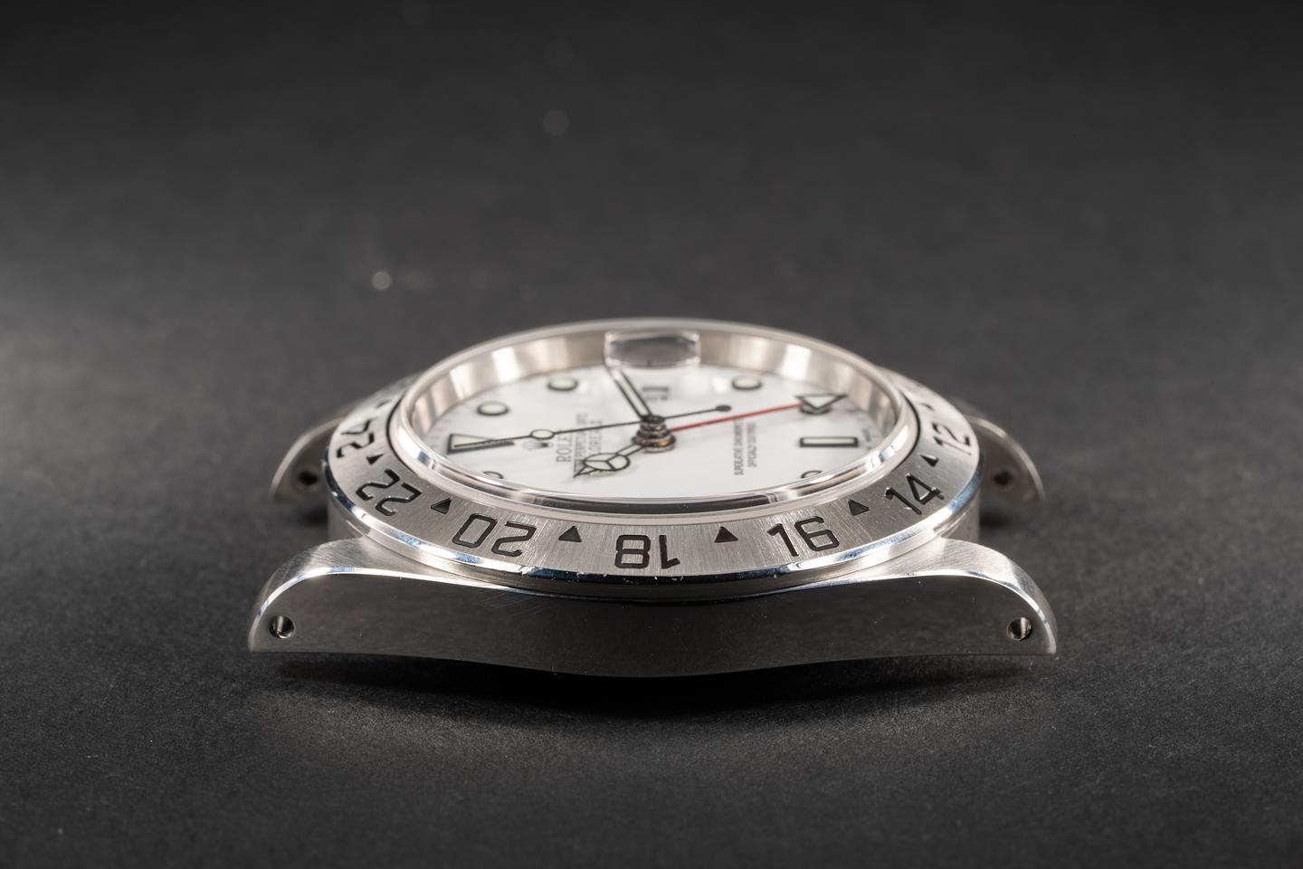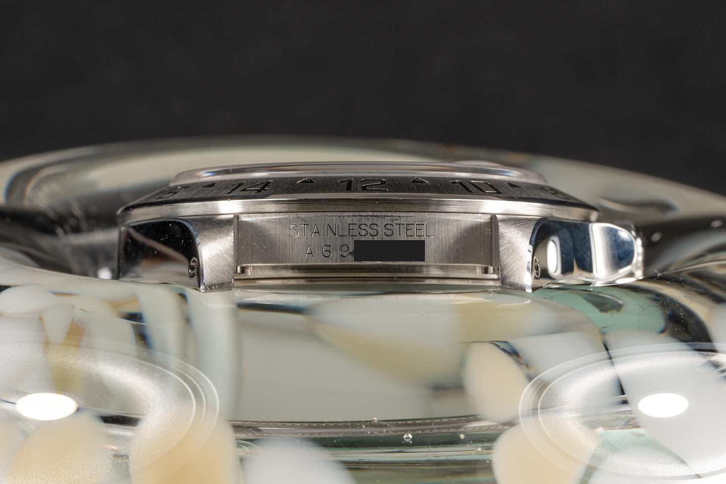 Case: The case has just returned from polishing and features sharp and prominent bevels. The stainless bezel is also in excellent condition and features a sharp and well-defined sunburst finish.