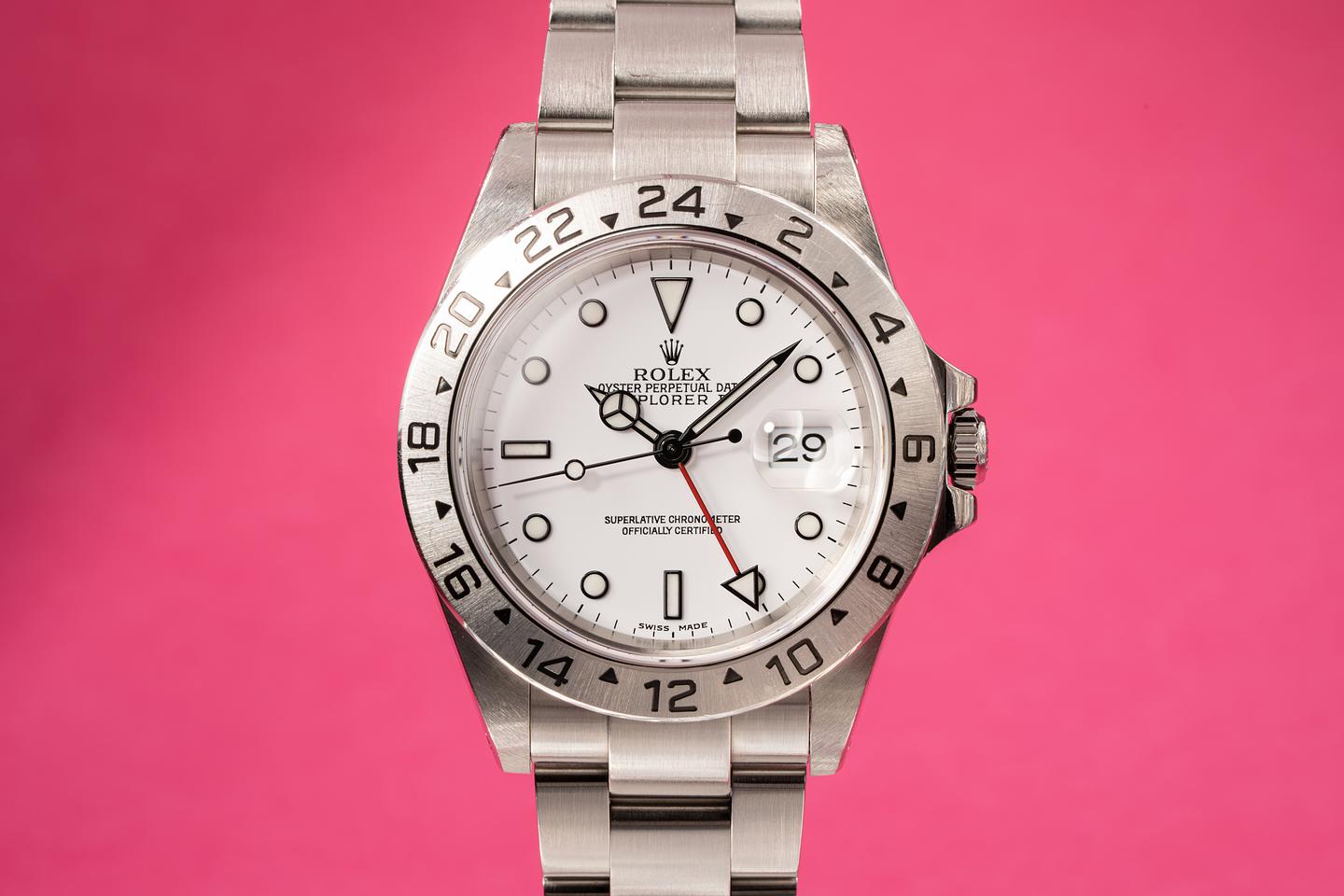 Notes: An excellent white dial Explorer 2 with the uncommon and desirable holes case/solid end link bracelet.