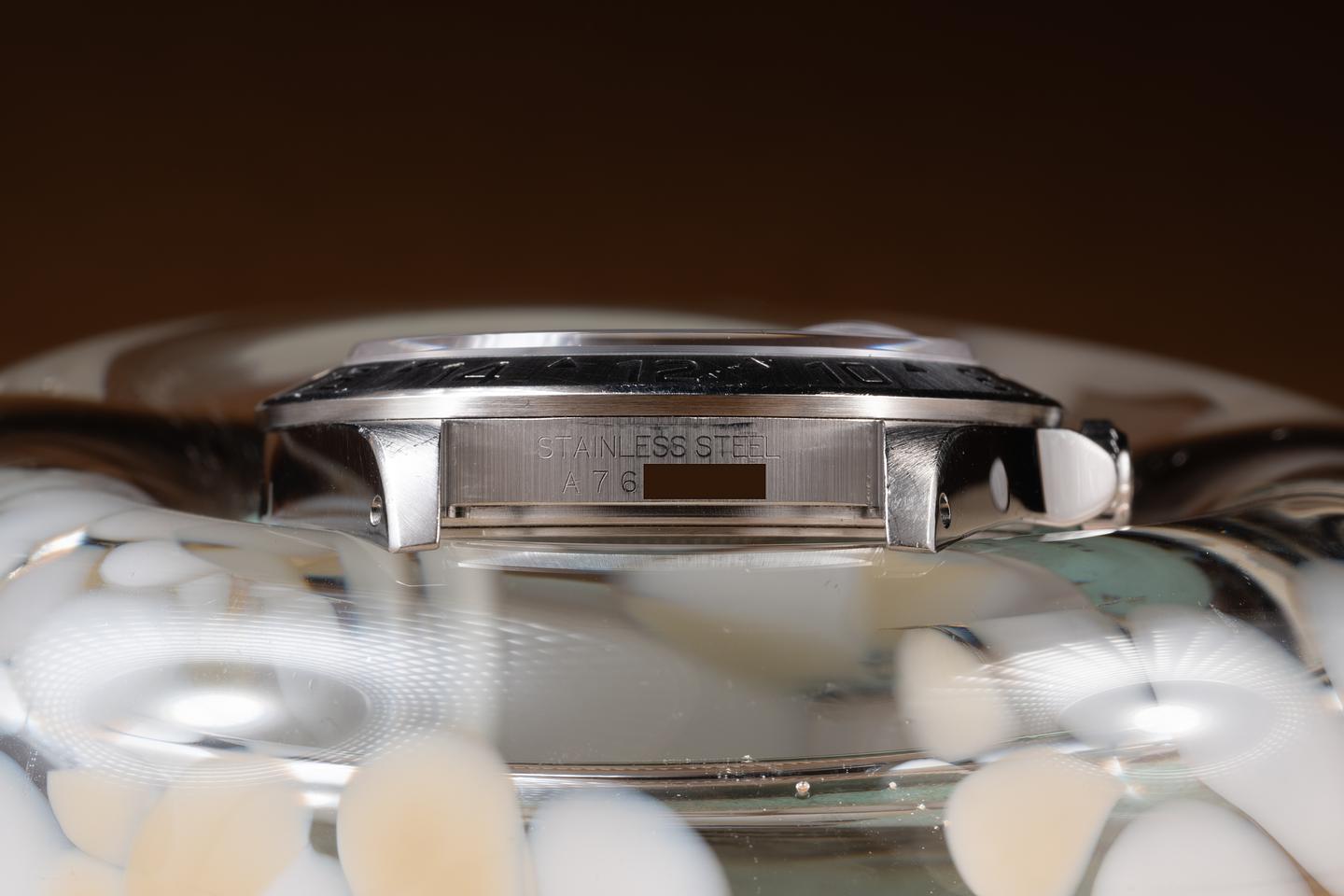 Bracelet: The 12 link oyster bracelet is excellent showing only light stretch fo4r its age. The clasp is stamped with a matching 1999 date code.