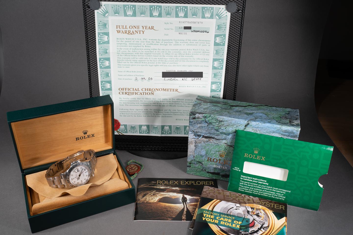Bracelet: The 12 link Oyster bracelet is excellent showing only light stretch for its age. The clasp is stamped with a matching 1999 date code.