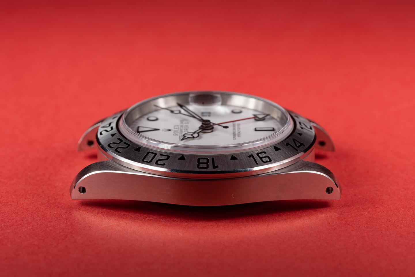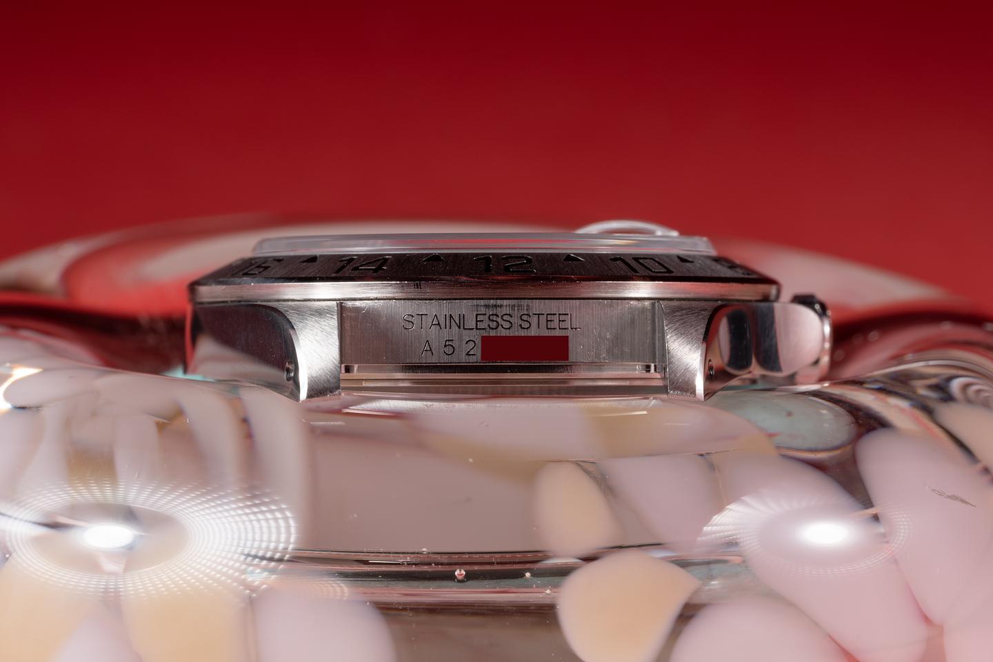 Case: The case has just returned from polishing showing sharp prominent bevels. The sharp stainless bezel has also just returned from polishing showing a sharp well defined sunburst finish.
