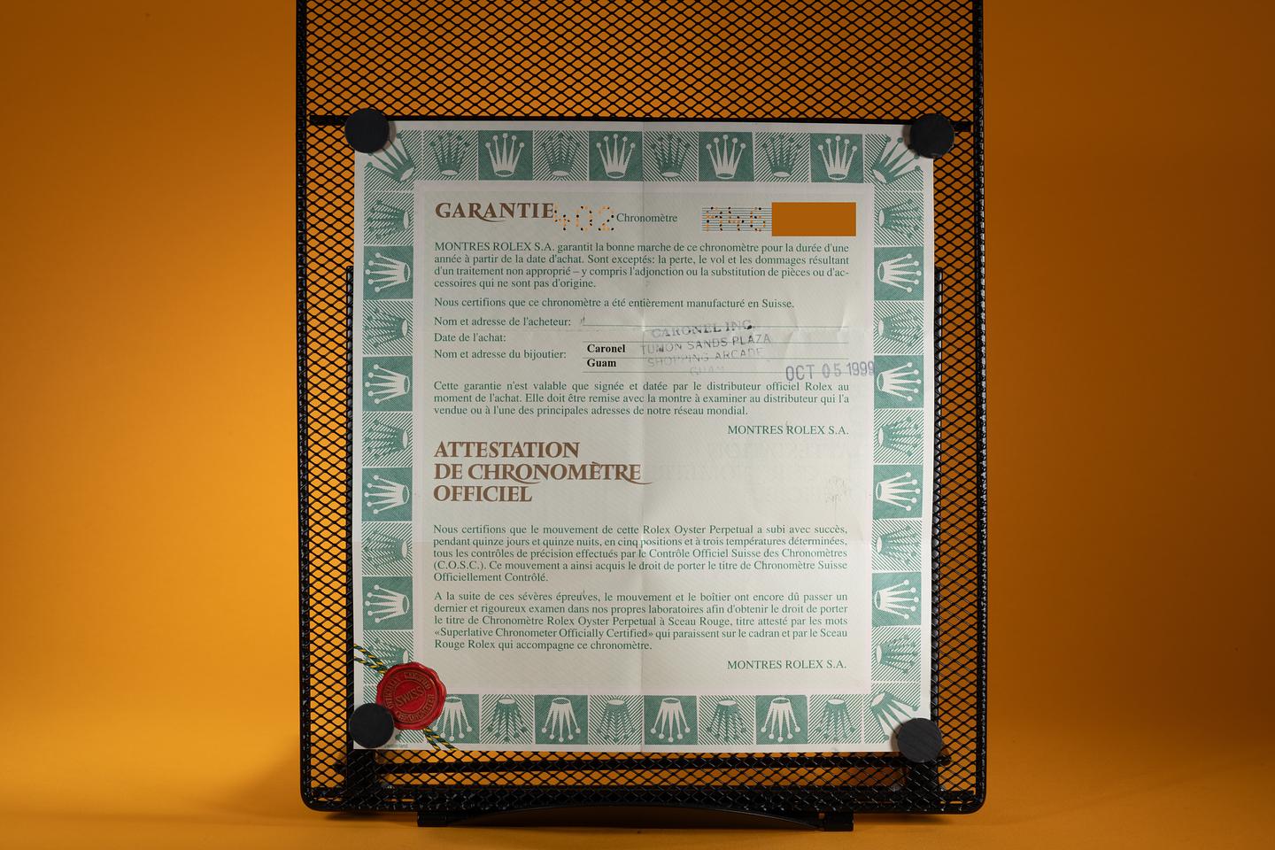 Bracelet: The 12 link Oyster bracelet is excellent showing only very light stretch for its age. The clasp is stamped with a matching 1999 date code.