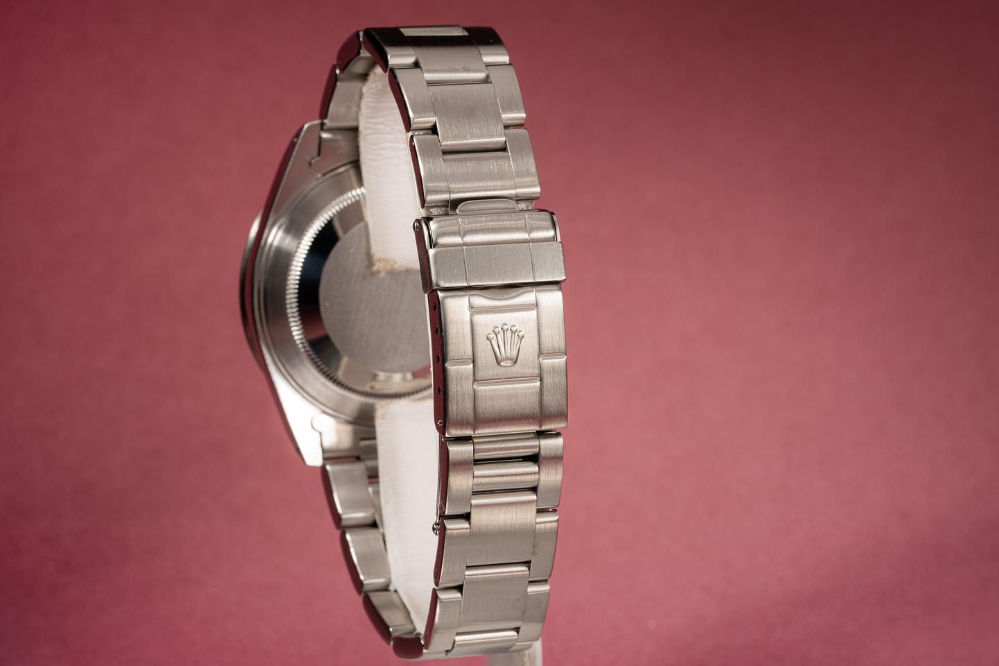 Bracelet: The 12 link oyster bracelet is excellent showing only light stretch for its age. The clasp is stamped with a matching 1999 date code.