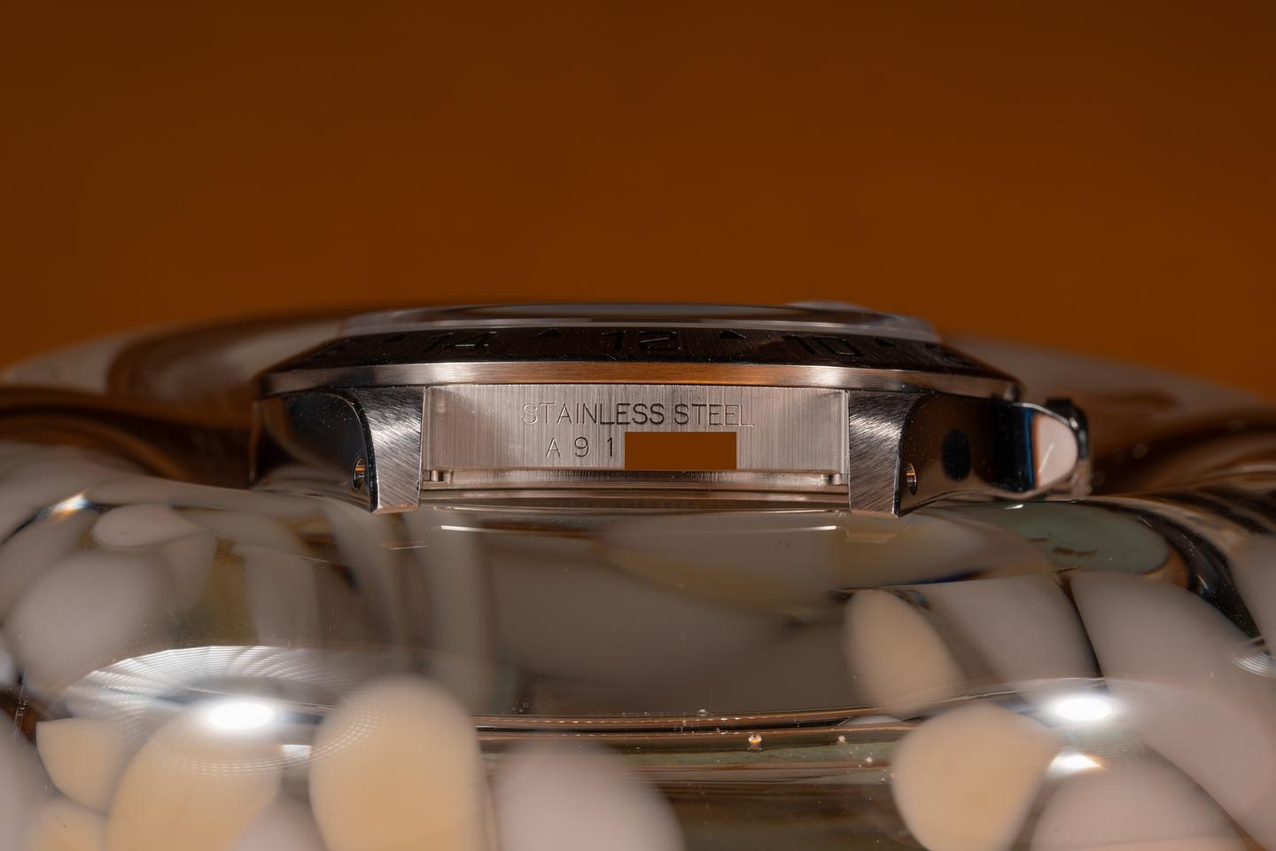 Bracelet: The 12 link Oyster bracelet is excellent showing only very light stretch for its age. The clasp is stamped with a matching 1999 date code.