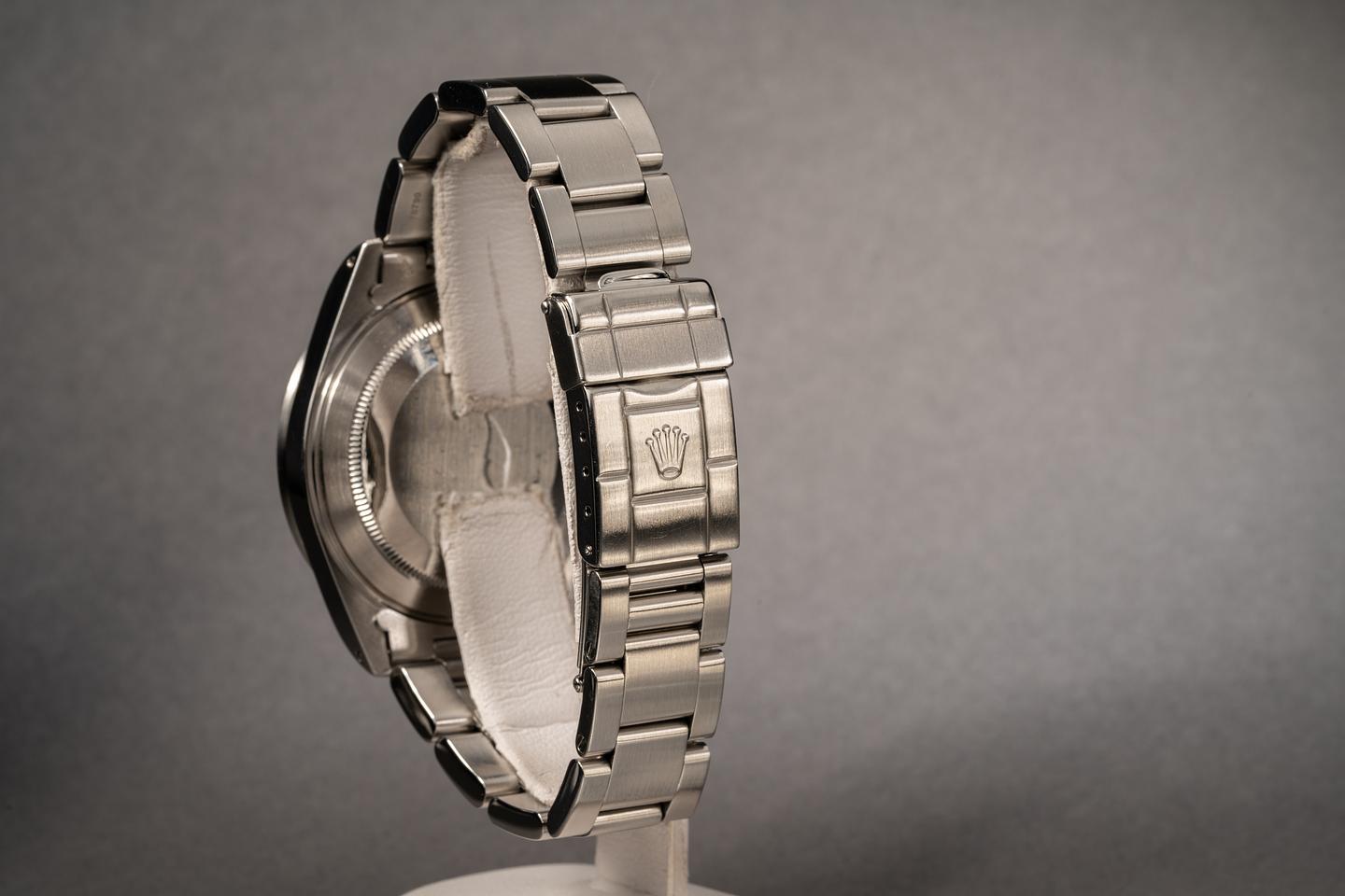 Bracelet: The 11 link Oyster bracelet is excellent showing average stretch for its age. The clasp is stamped with a matching 1999 date code.