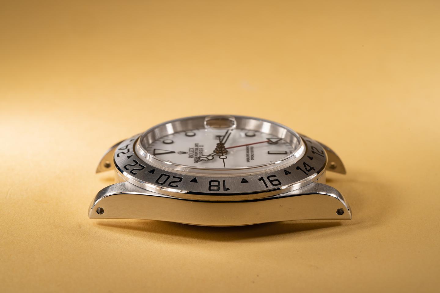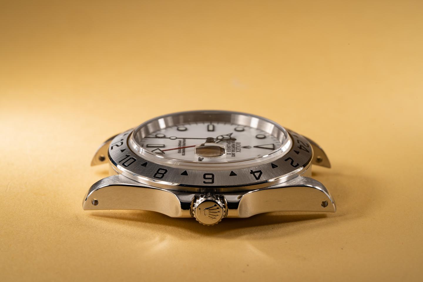Case: Excellent case that has just been expertly refinished by LA Watchworks and features sharp prominent bevels. The stainless bezel is also in excellent condition with a sharp and well defined sunburst finish.