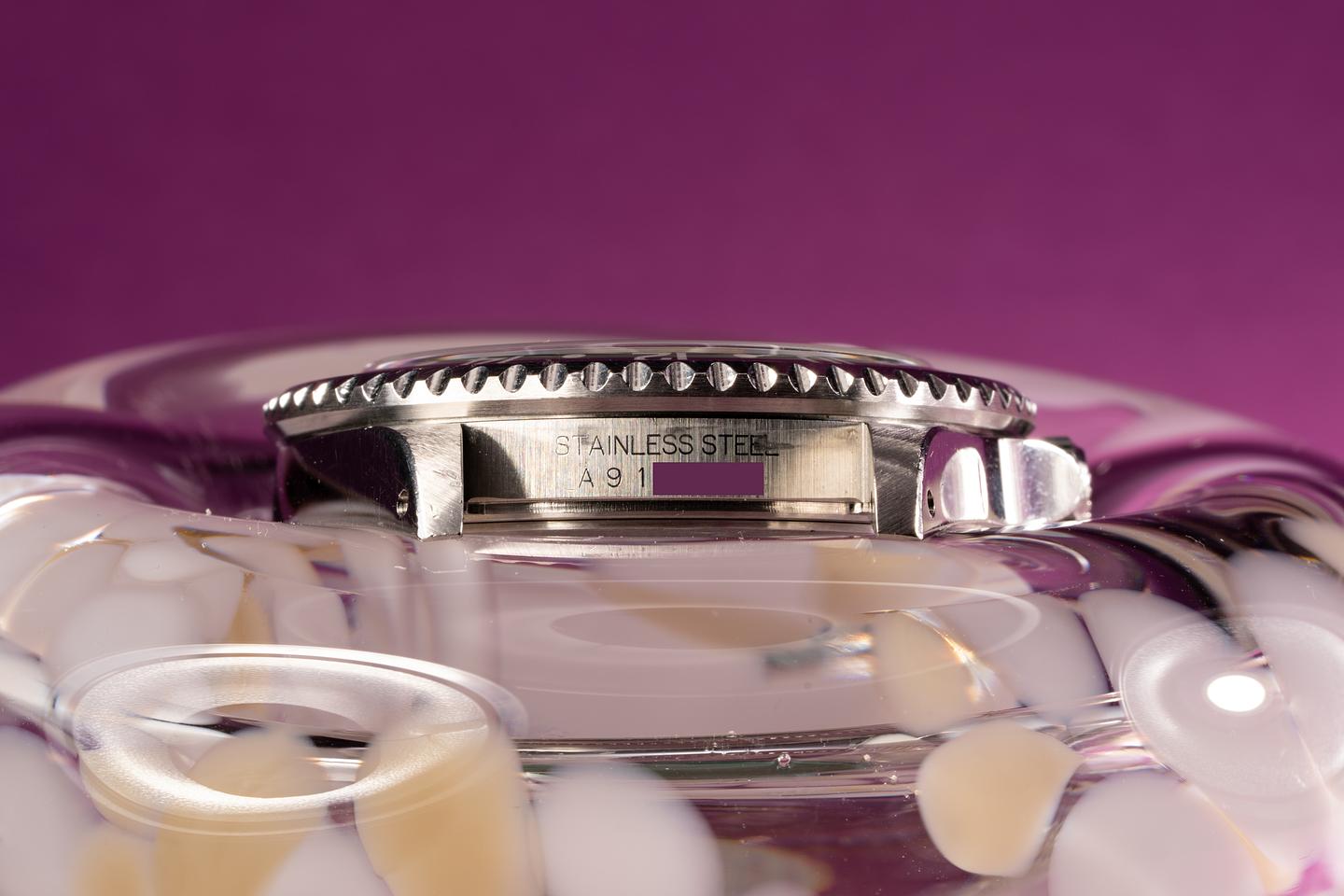 Bracelet: The 12 link SEL oyster bracelet is in excellent condition and has very light stretch. The clasp is stamped with a 2000 date code.