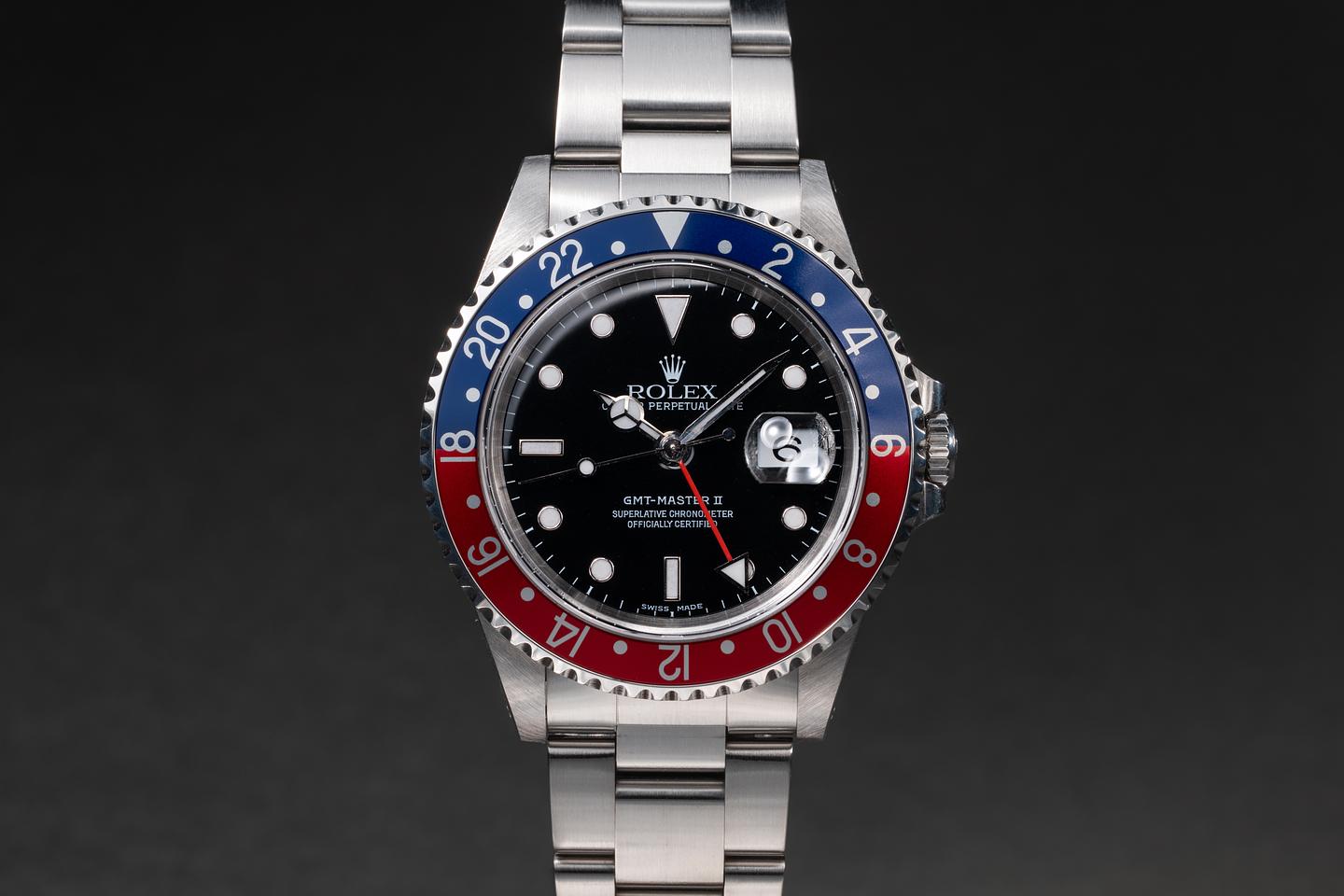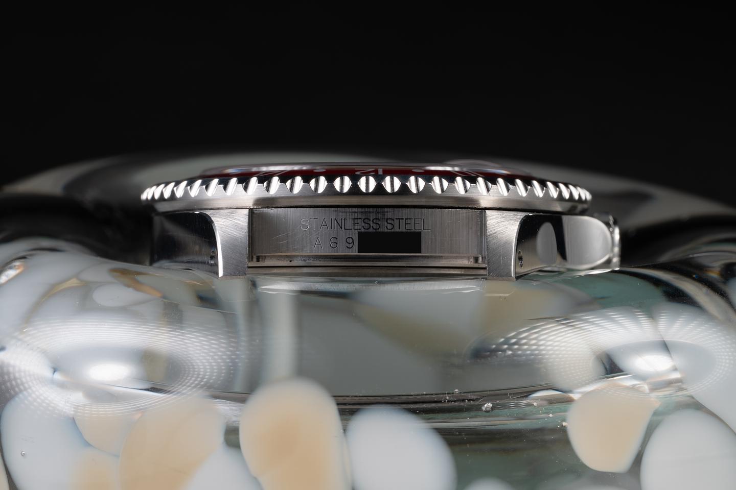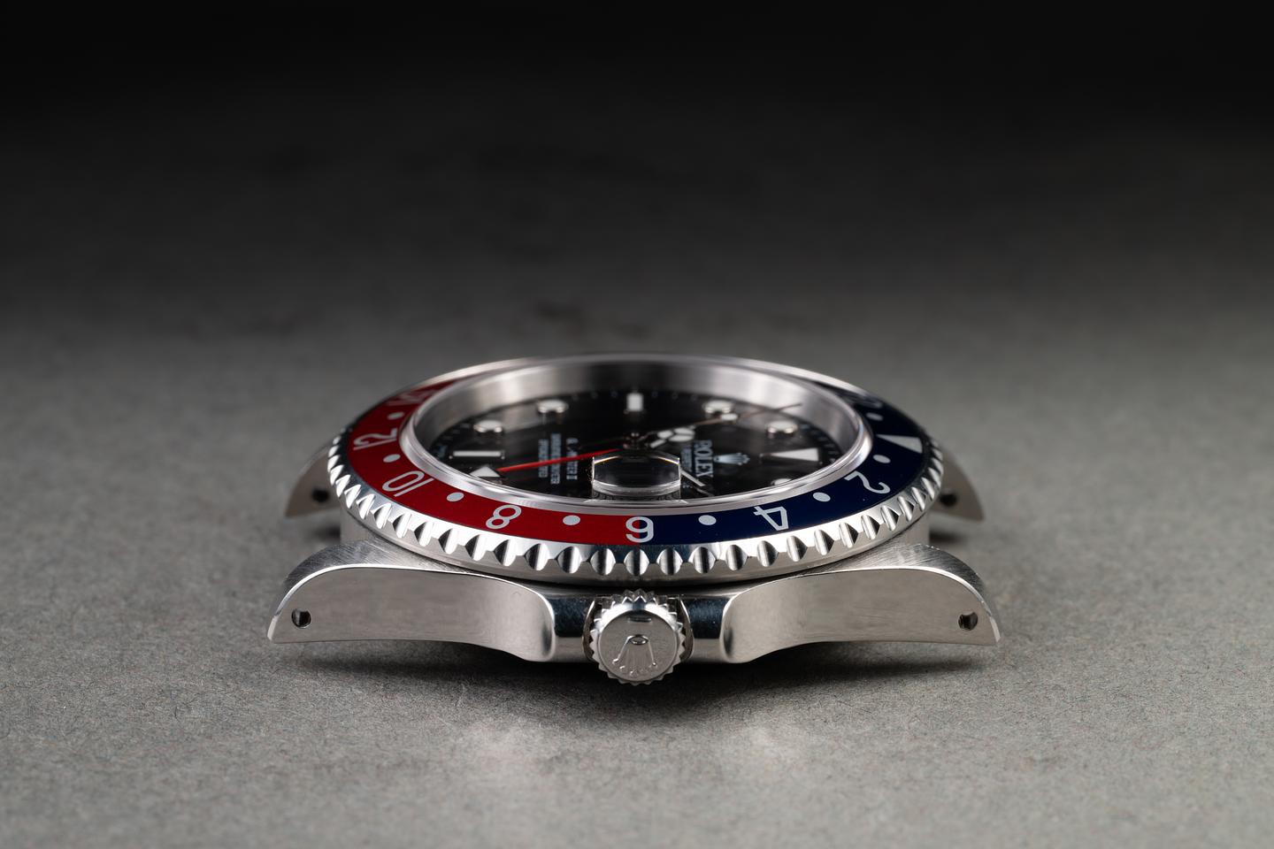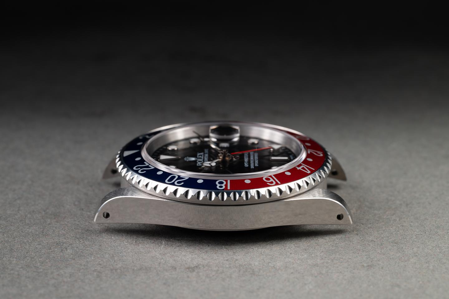 Case: The recently polished case is excellent, showing sharp, prominent bevels and only very light wear. The blue and red "Pepsi" bezel is also in excellent condition, showing only very light wear from use.