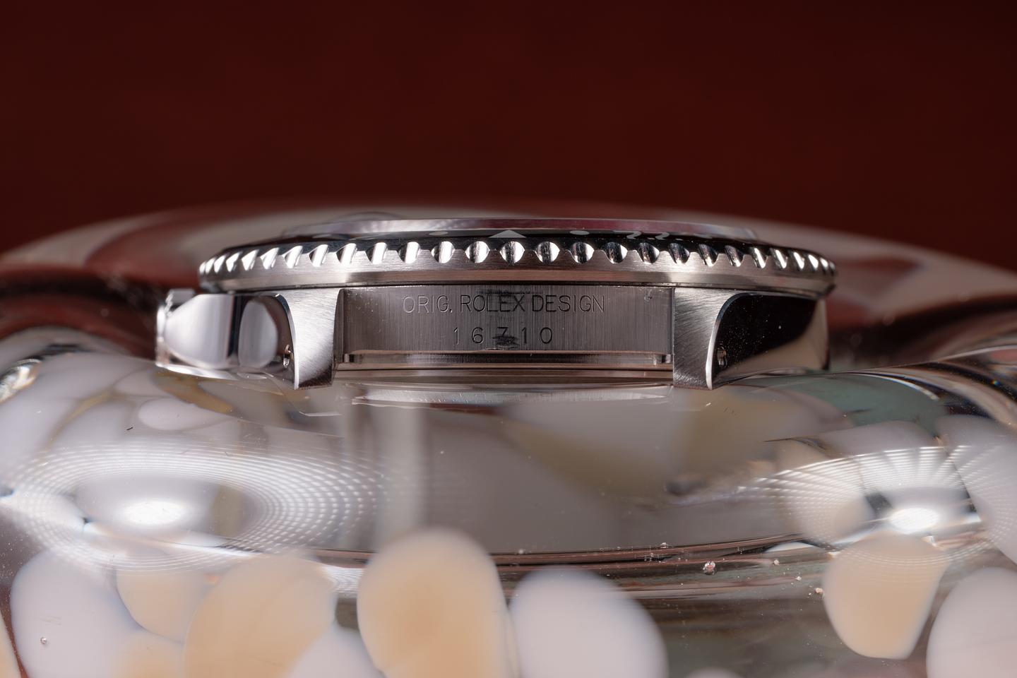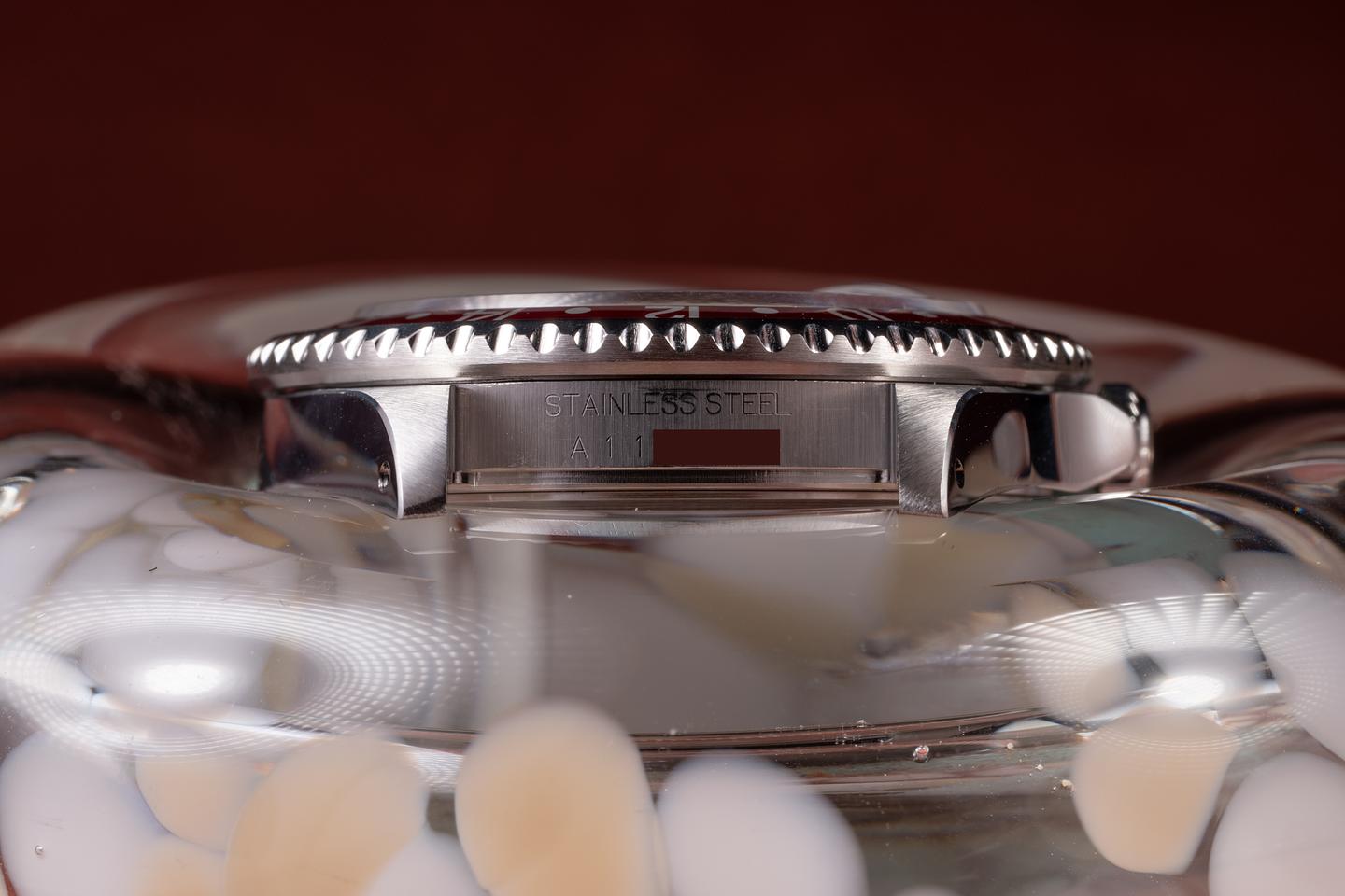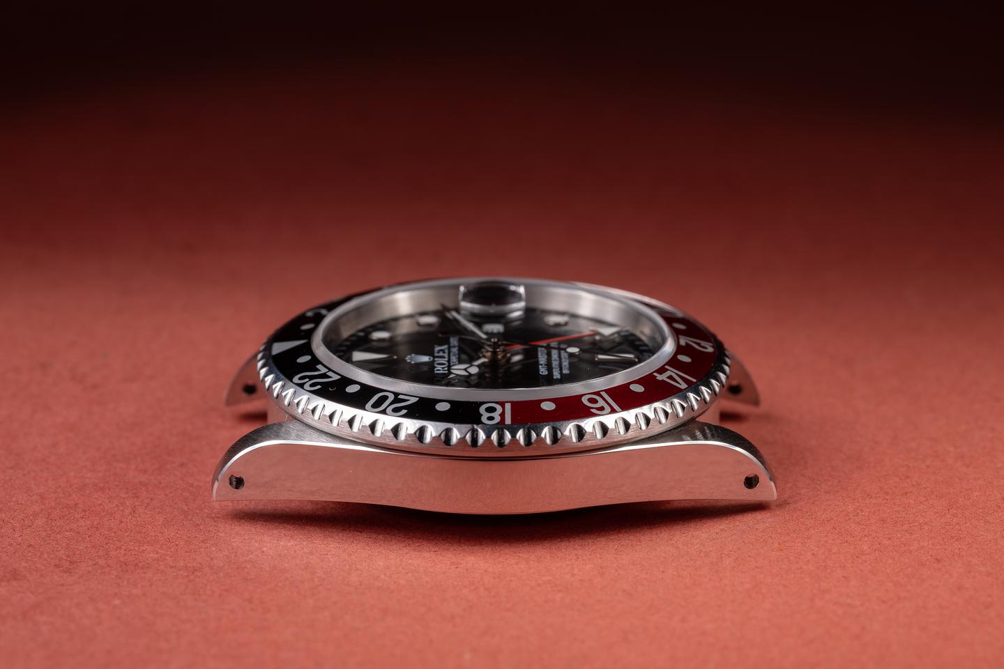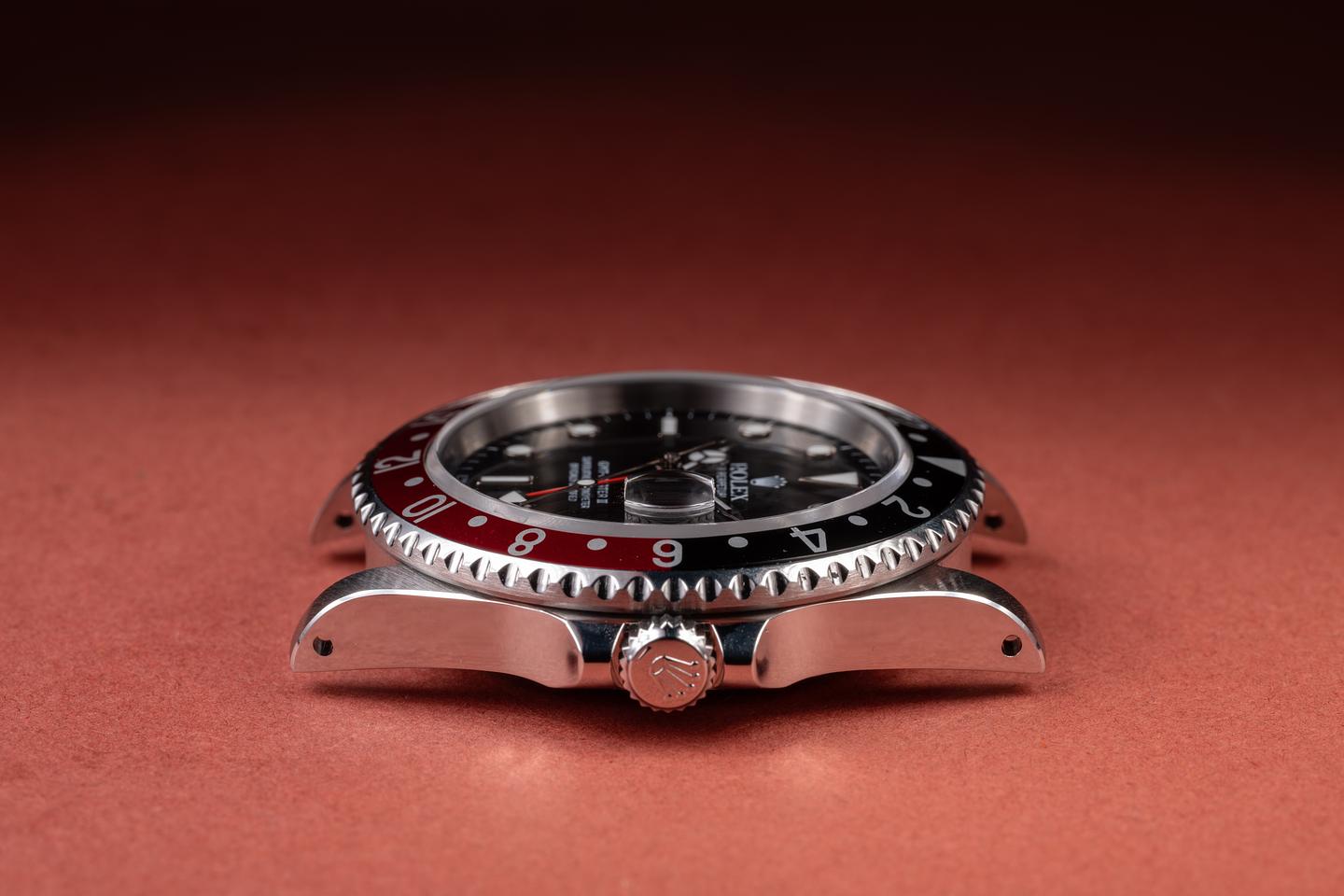Case: The excellent case has just returned from polishing, showing sharp, prominent bevels. The black and red "Coke" bezel is also in excellent condition, showing only very light wear from use.