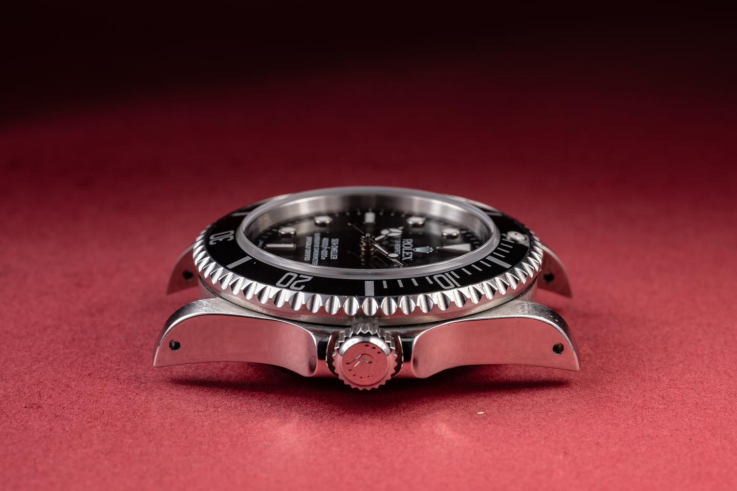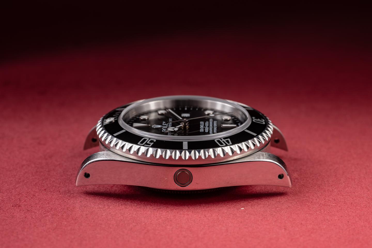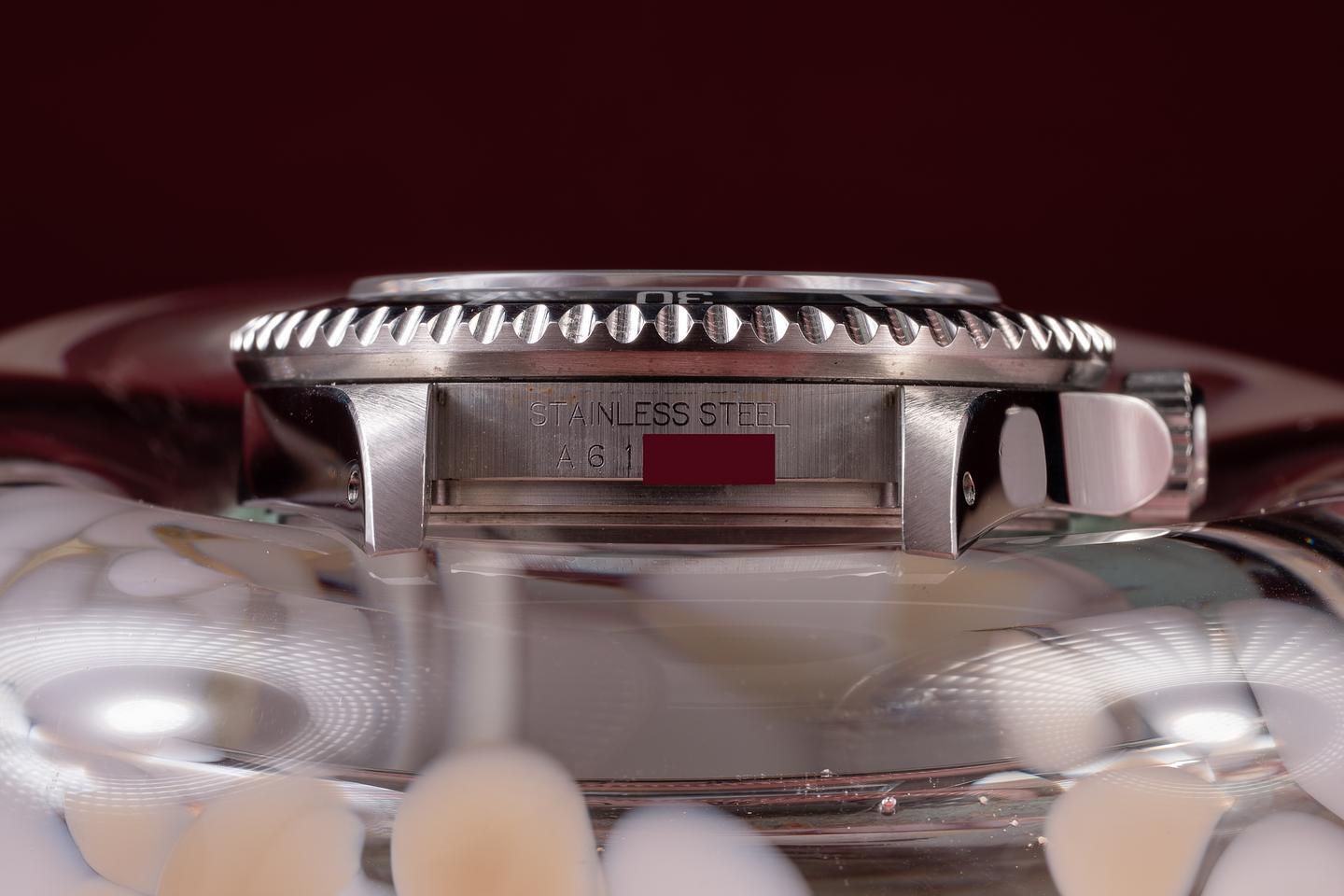 Case: The excellent, thick, and even case appears to be unpolished, showing only light wear from use. The black bezel insert is also in excellent condition, showing only light wear from use.