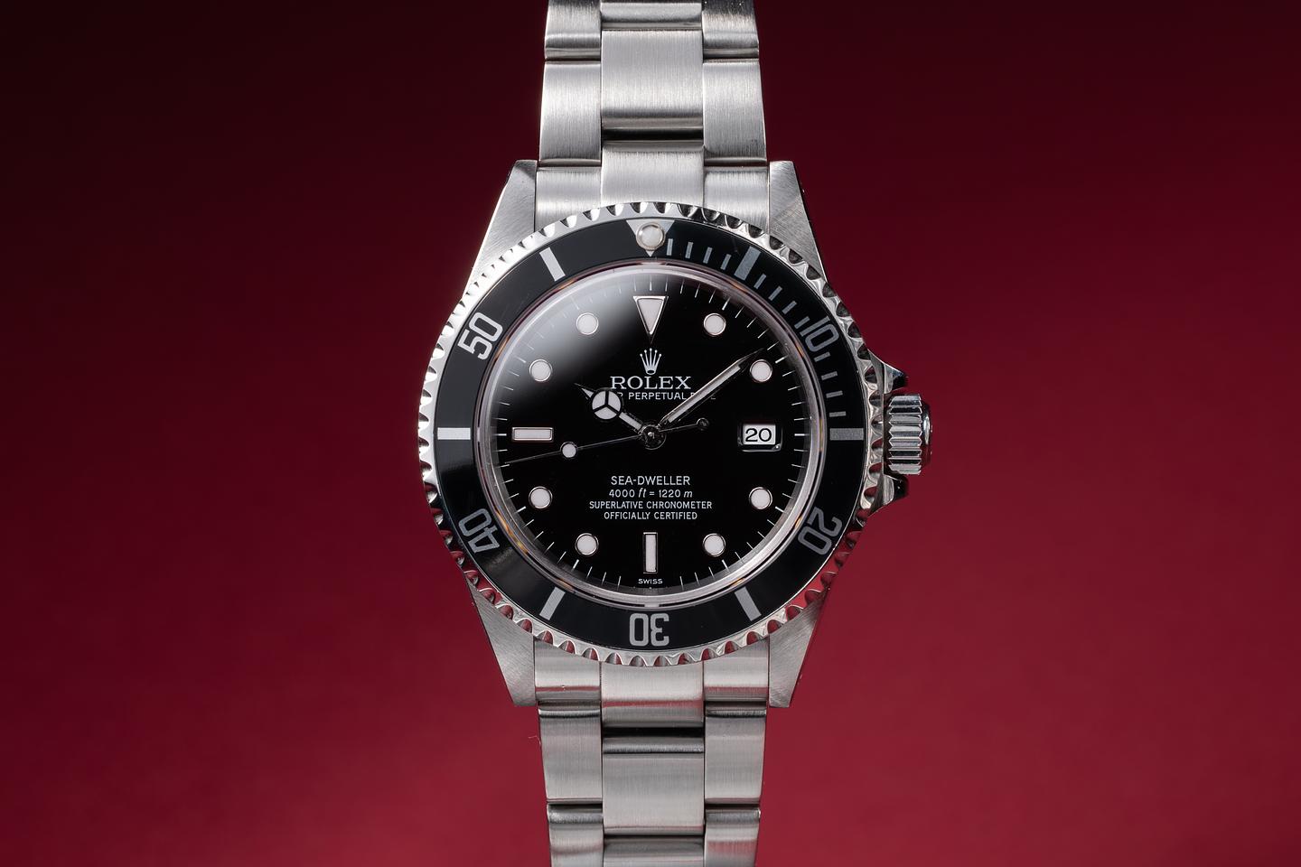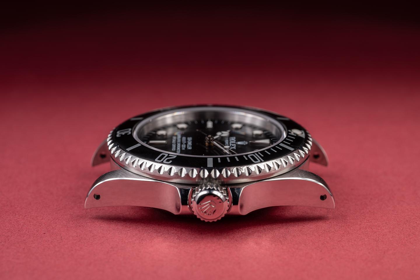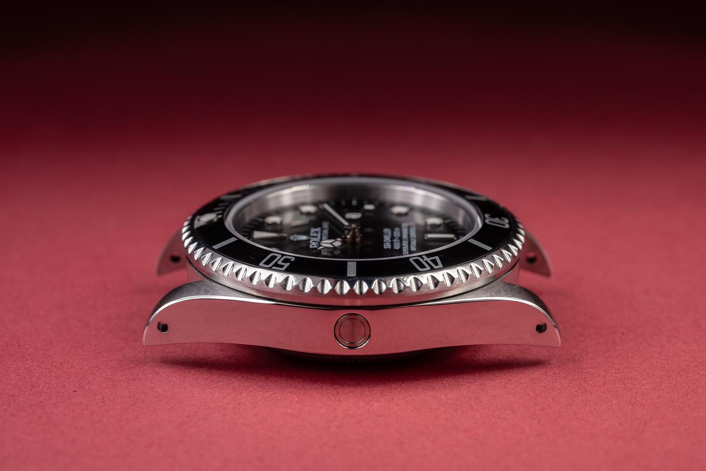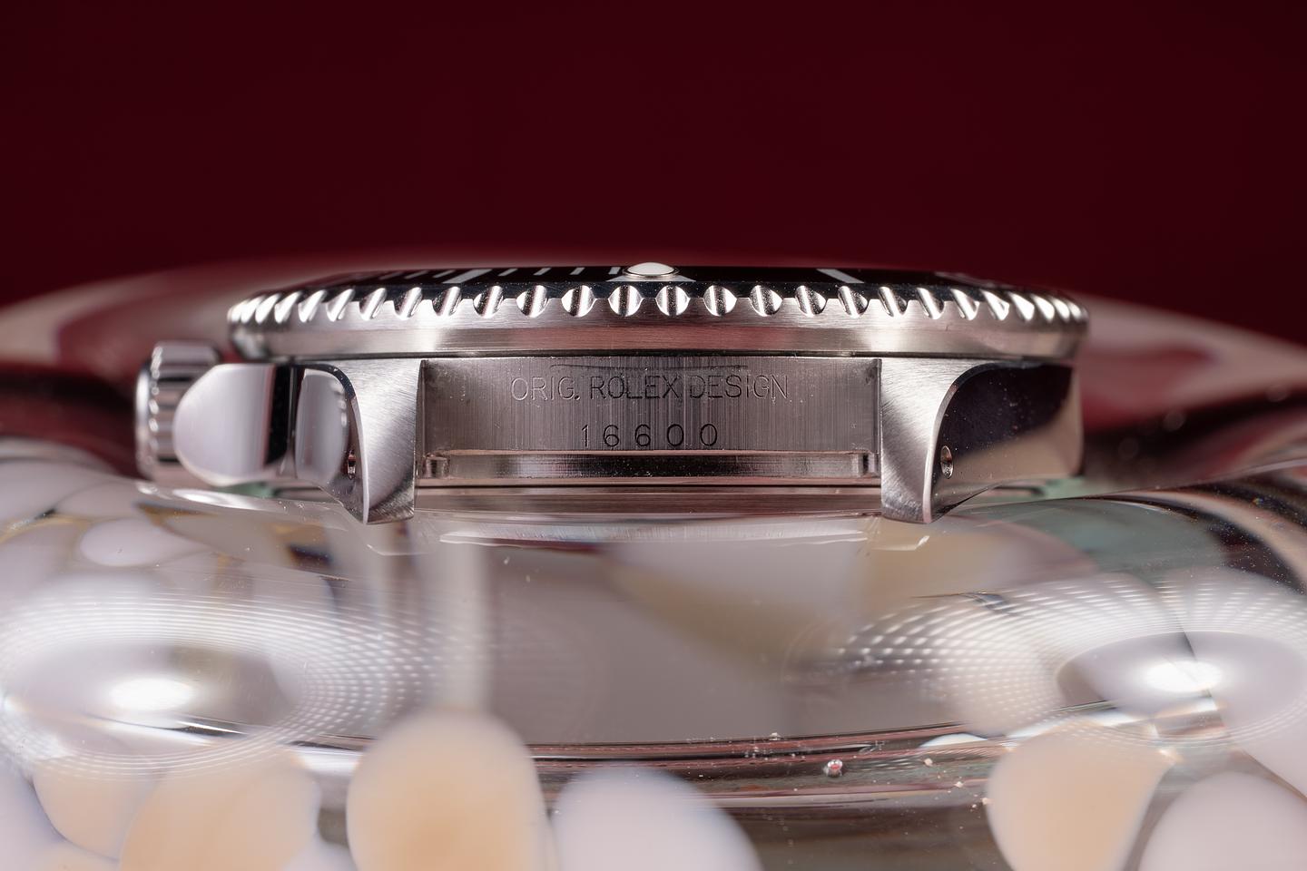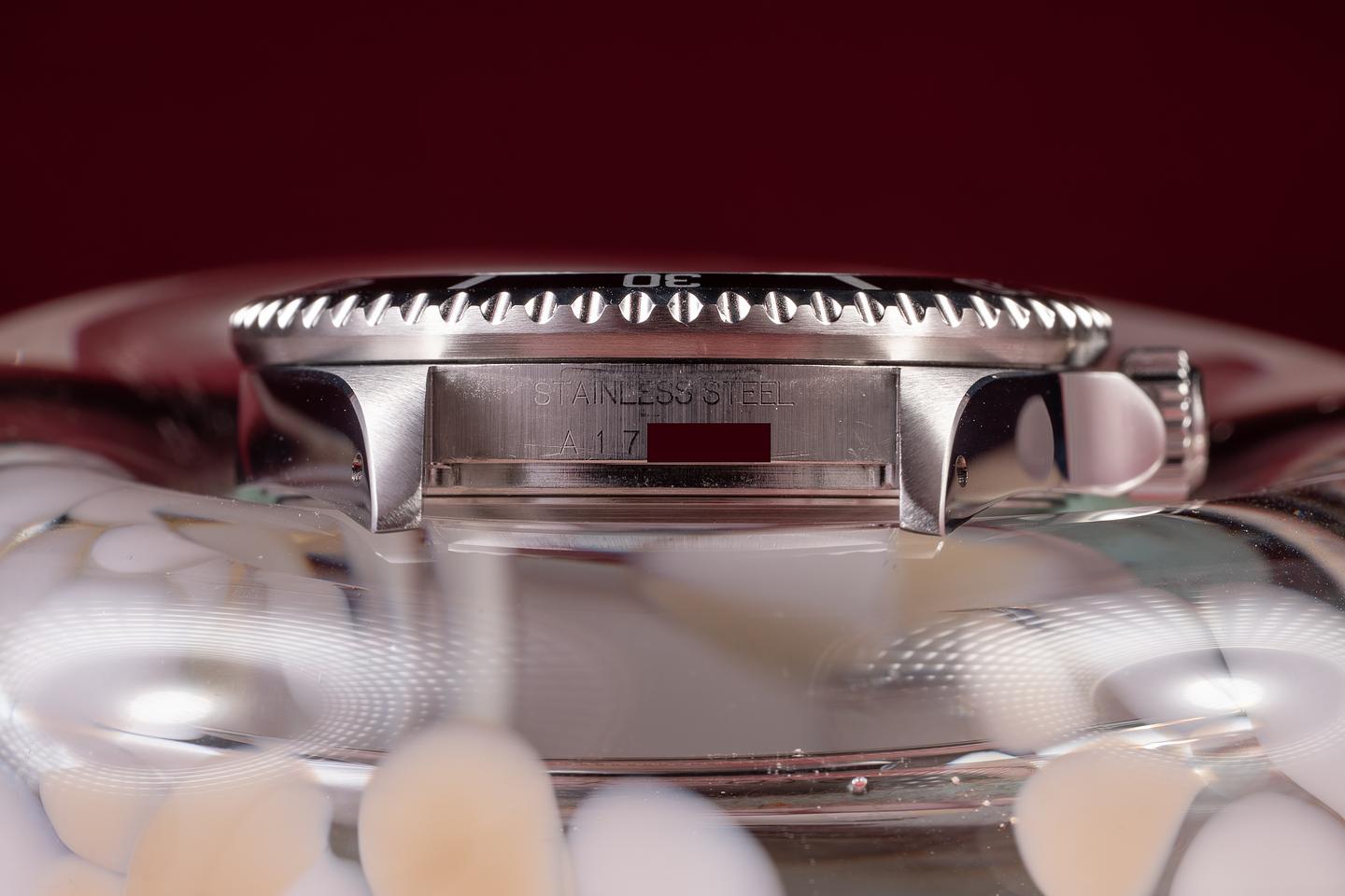 Case: The recently polished case is excellent, showing sharp, prominent bevels. The black bezel is also in excellent condition, showing only very light wear from use.