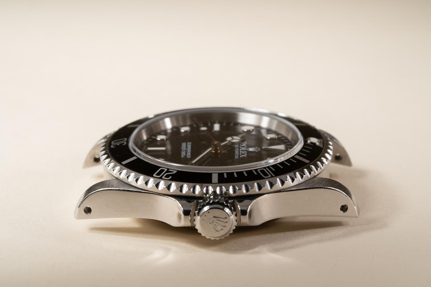 Case: The thick case is excellent showing very light wear from use. The black bezel insert is also excellent showing little if any wear.