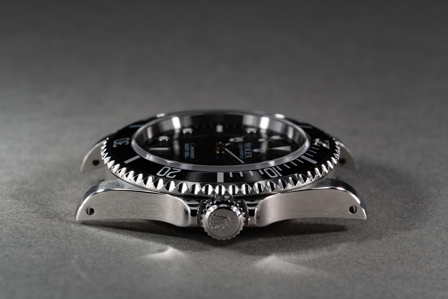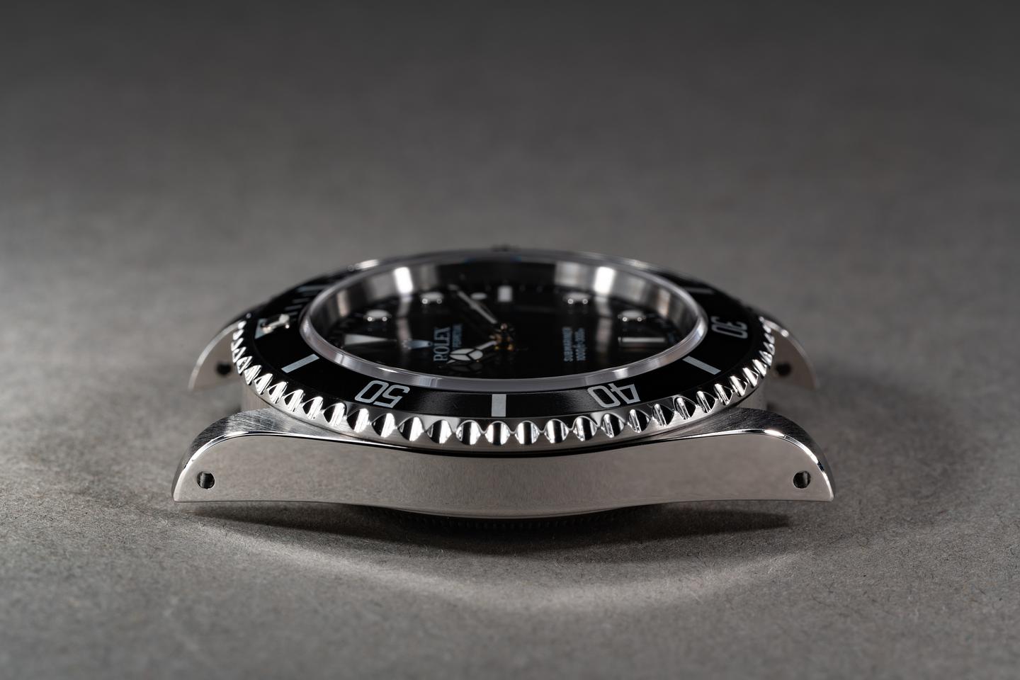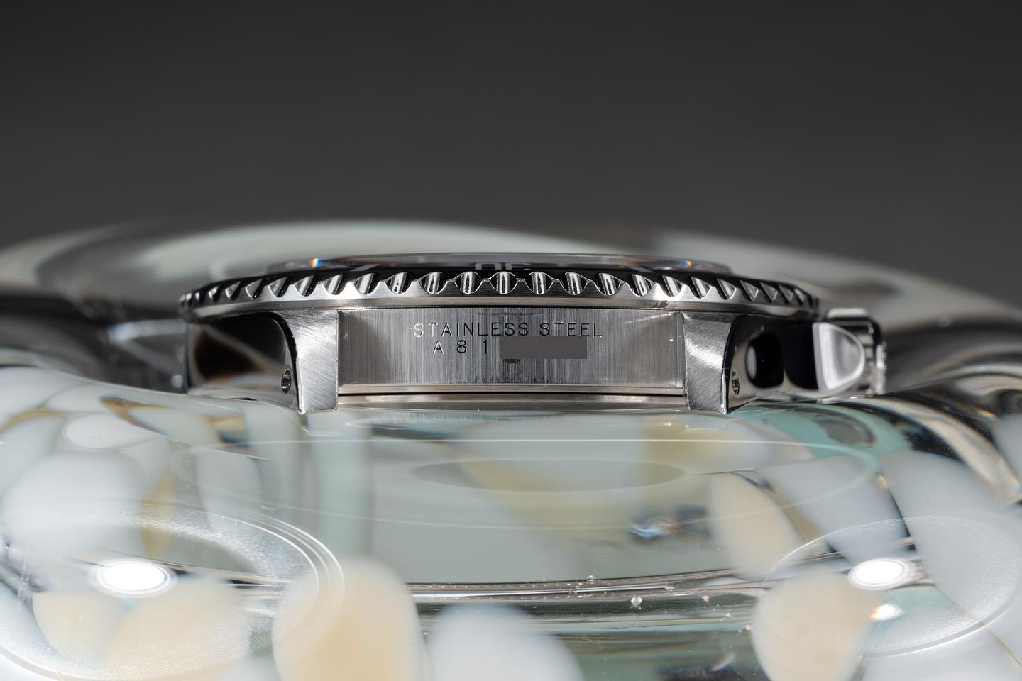 Case: The previously polished case is excellent showing prominent bevels and only light wear from use. The black bezel is also in excellent condition showing only very light wear from use.