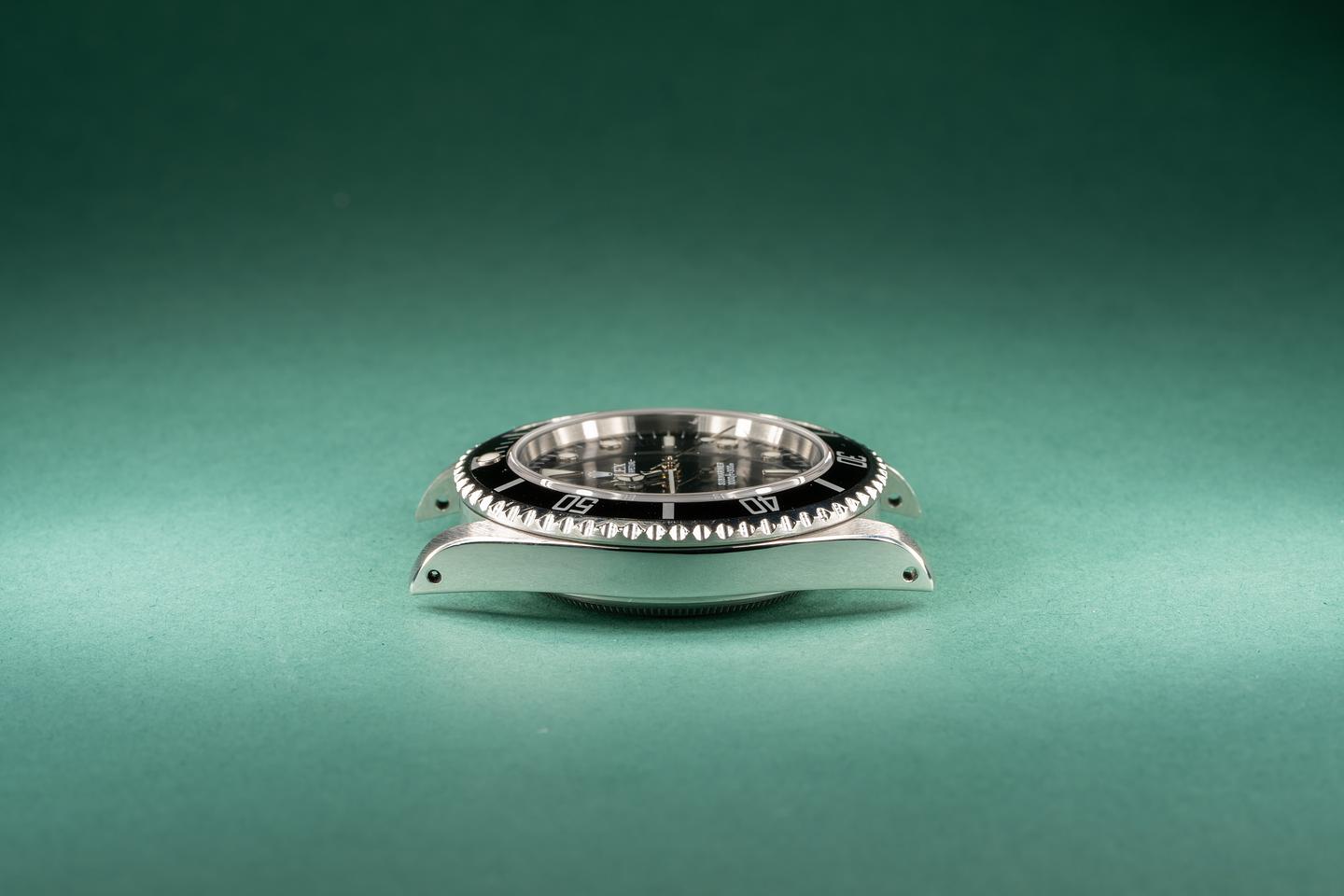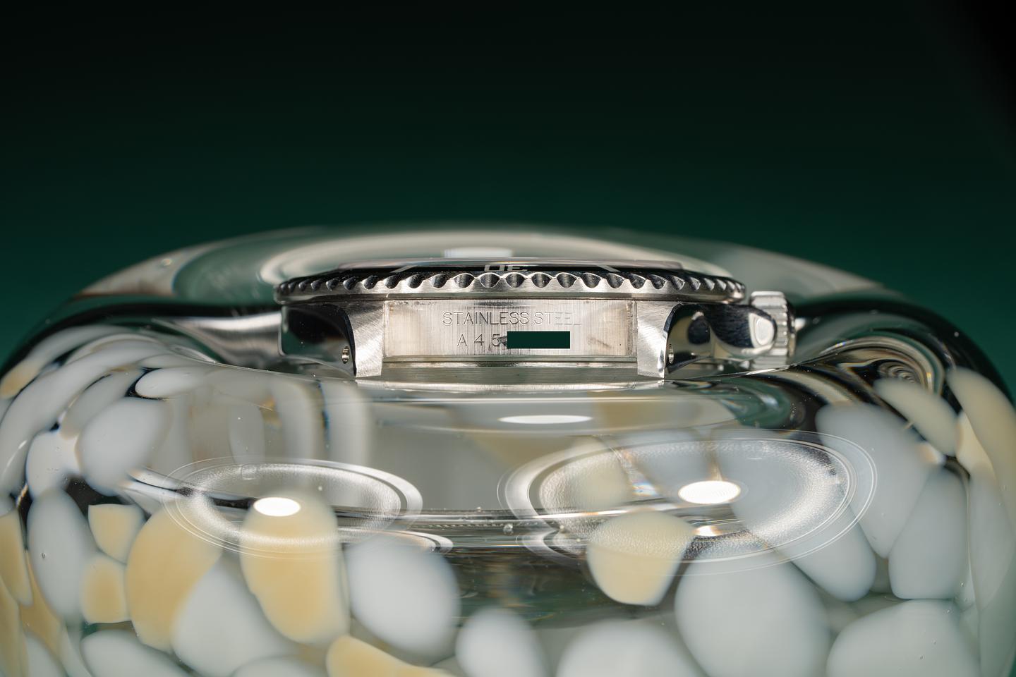 Case: Excellent case that has recently been polished. The black bezel insert is also in excellent condition and shows light wear. There is a ver light scratch on the sapphire under 1000ft that is hard to see when you are wearing the watch.