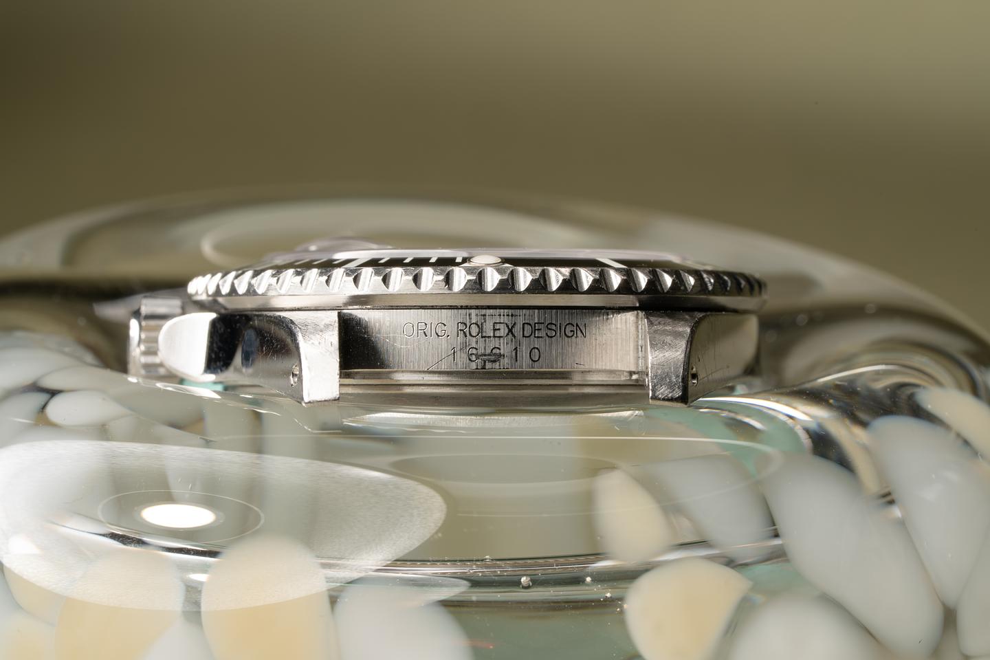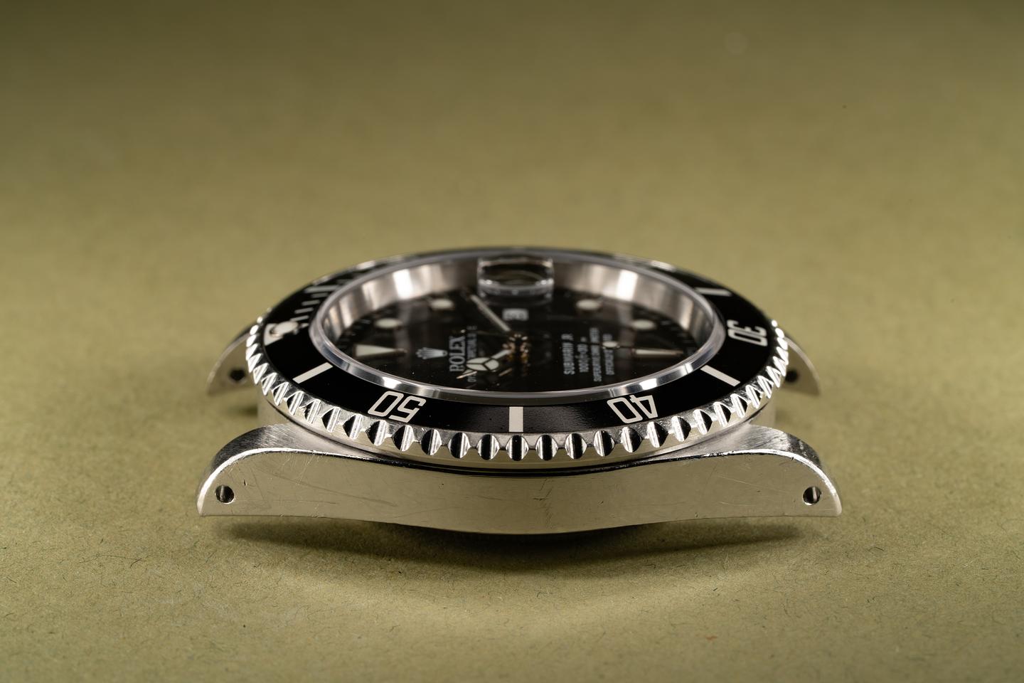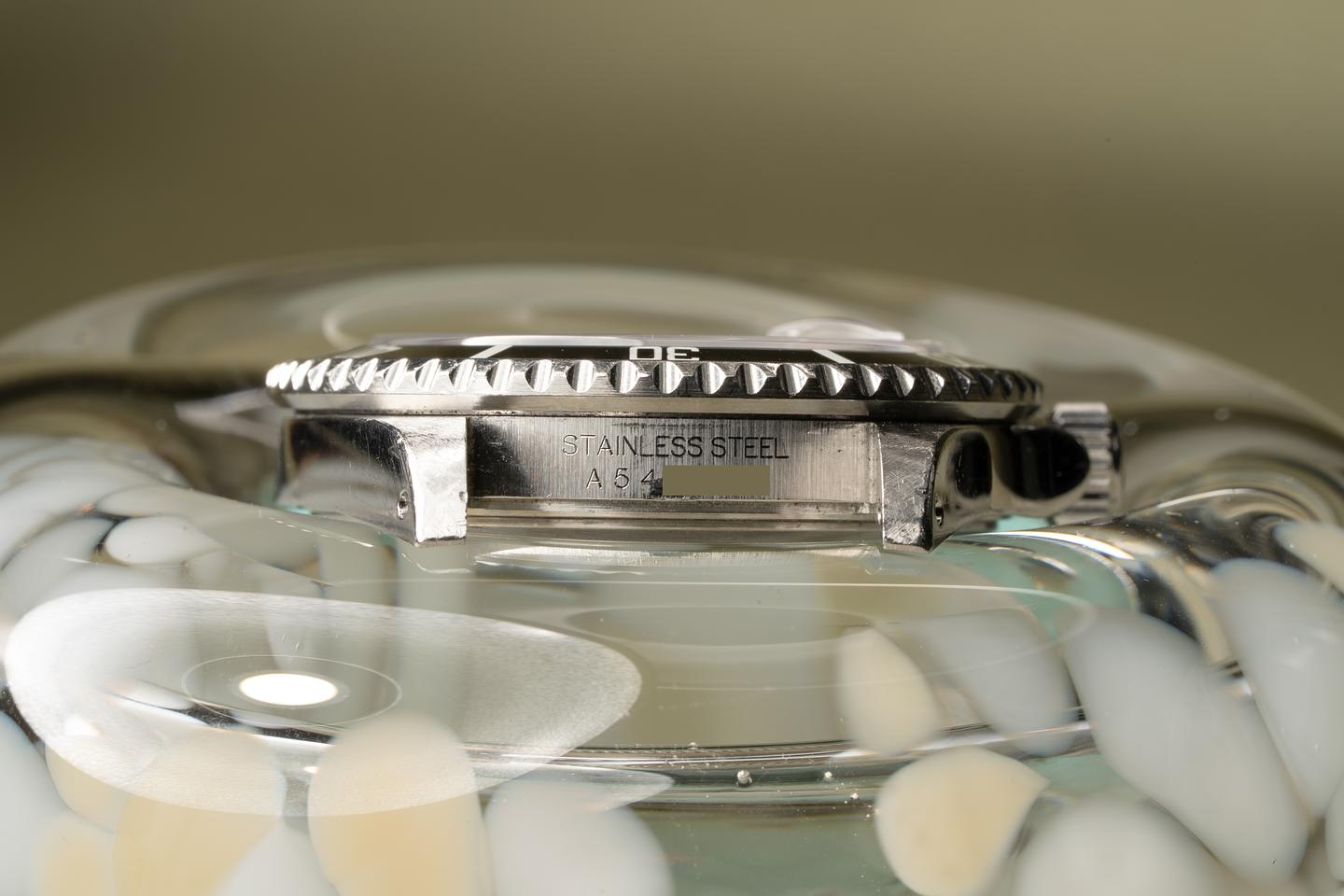 Case: The thick case is excellent with the factory bevels still intact. The case shows some wear from use. The black bezel insert is in excellent condition and shows very light wear.