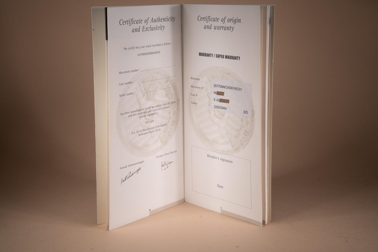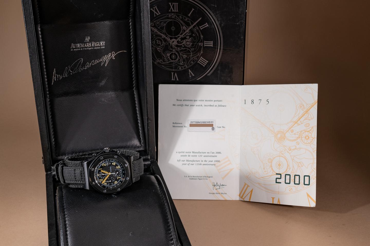 Notes: Made in colaborating with Arnold Schwarzenegger for the movie "End of Days" this Royal Oak Offshore was limited to only 500 pieces.