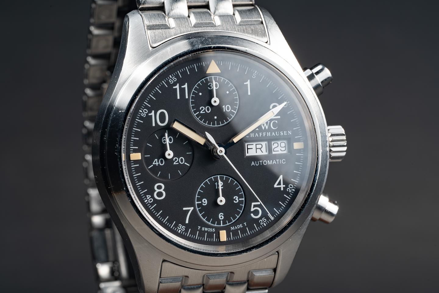Bracelet: The 21-link IWC bracelet is excellent, showing only very light stretch for its age. 3 additional links are included with the watch.