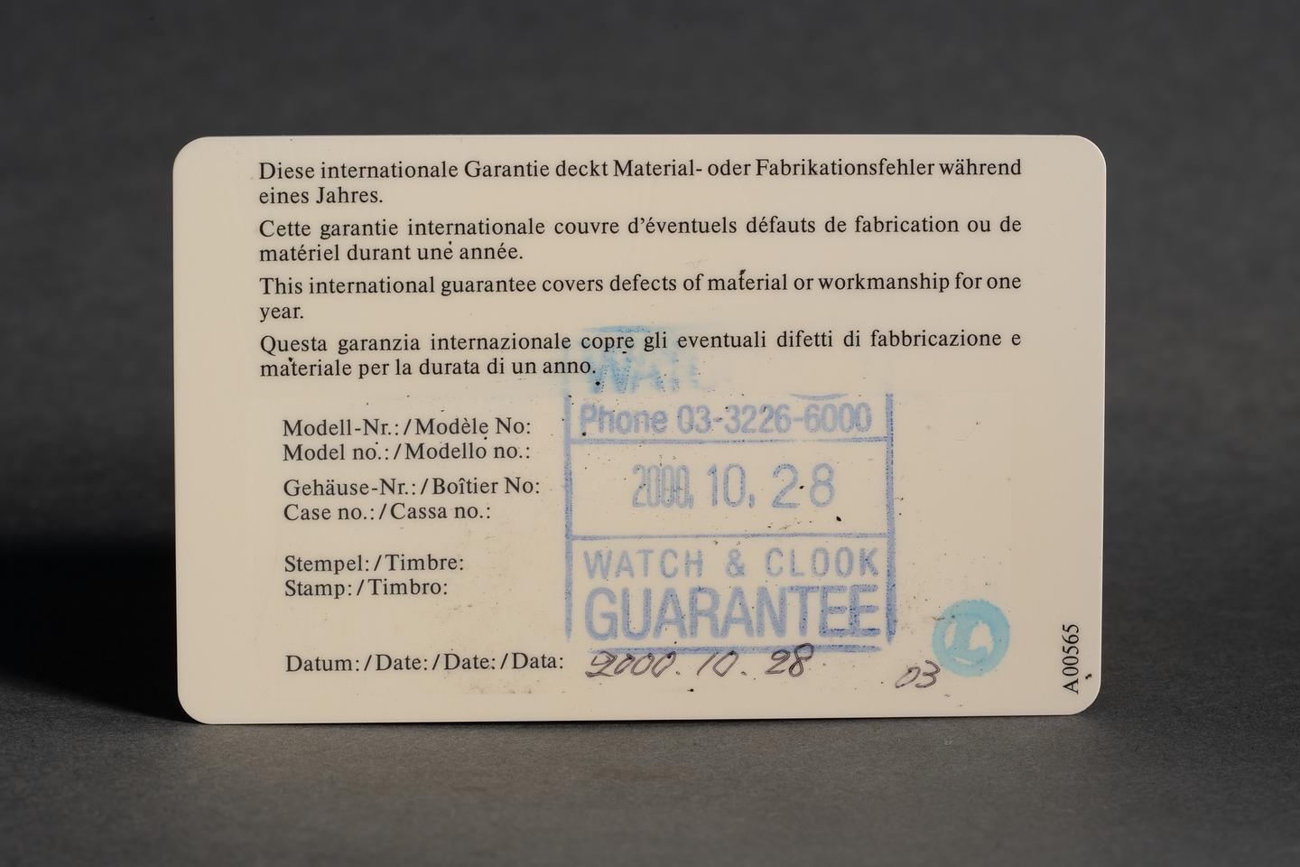 Accessories: Unserialized International Guarantee, Serialized hang tags, Box, 2 pusher tools.