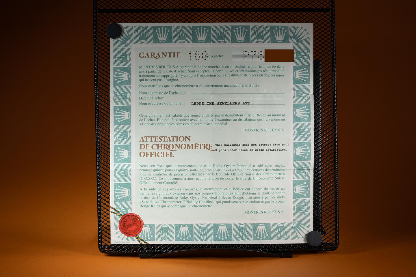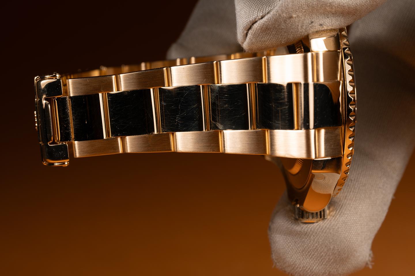 Bracelet: The 12 link 18K yellow gold Oyster bracelet is excellent showing only very light stretch for its age. The clasp is stamped with a matching 2000 date code.