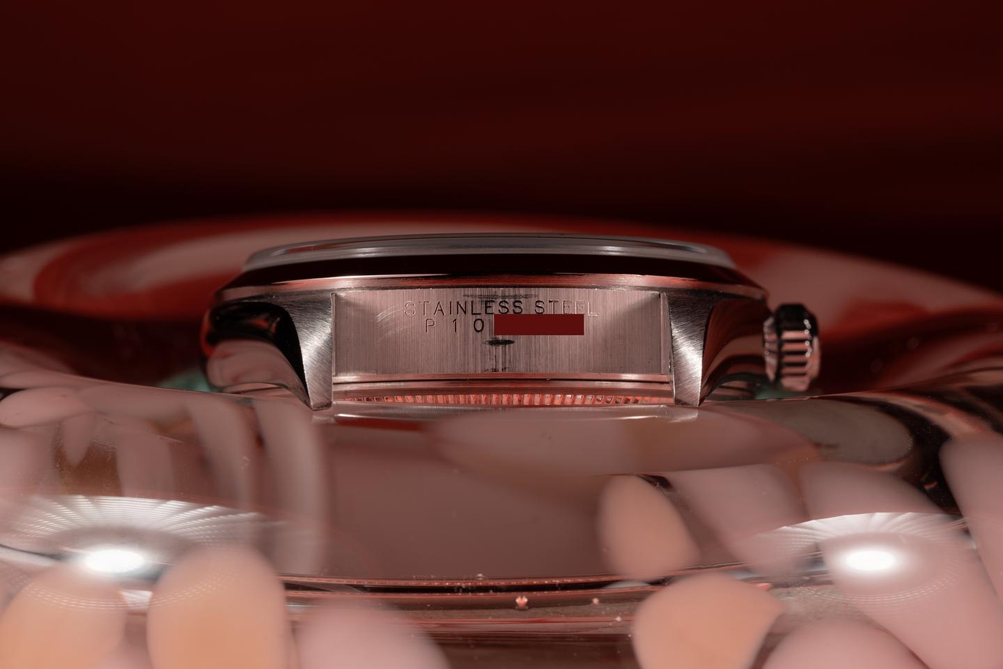 Case: The recently polished case is excellent showing only very light wear from use. The smooth stainless bezel is also in excellent condition showing only very light wear.