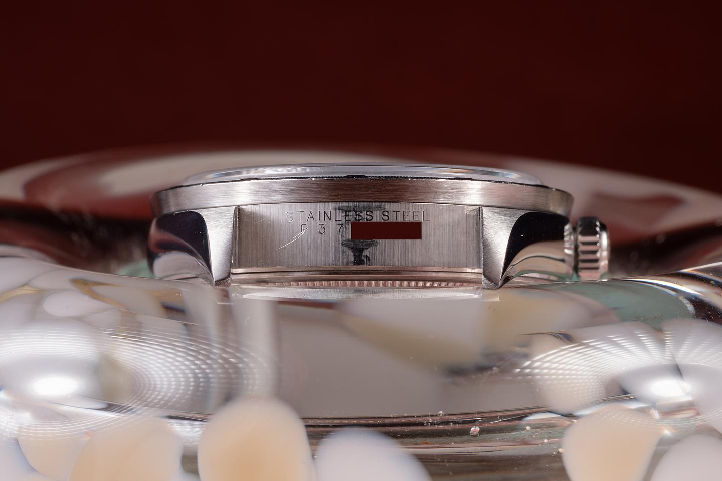 Case: The sharp 34mm case is excellent, showing only light wear from use. The sharp stainless engine-turned bezel is also in excellent condition, showing only light wear from use.