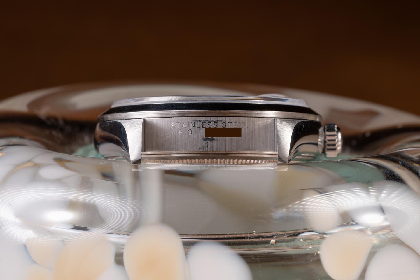Case: The sharp 34mm case is excellent, showing only light wear from use. The smooth stainless bezel insert is also in excellent condition, showing only light wear from use.