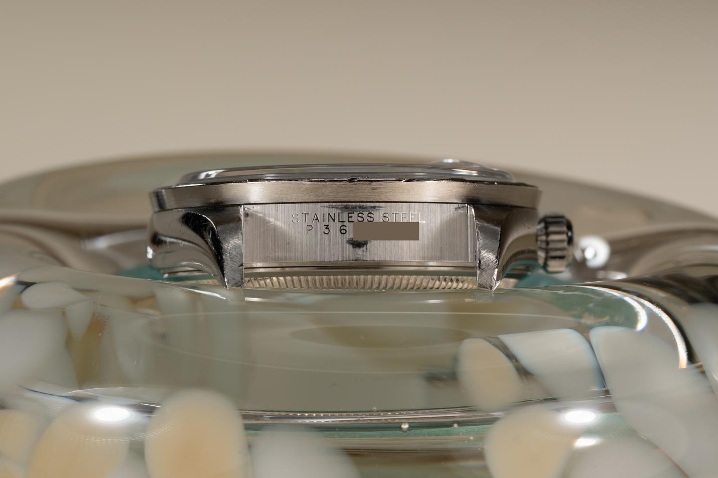 Case: The 34mm case is excellent showing light wear from use. The engine-turned bezel is also in excellent condition showing only very light wear.