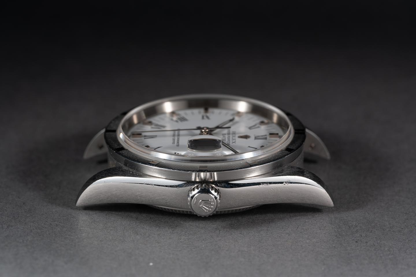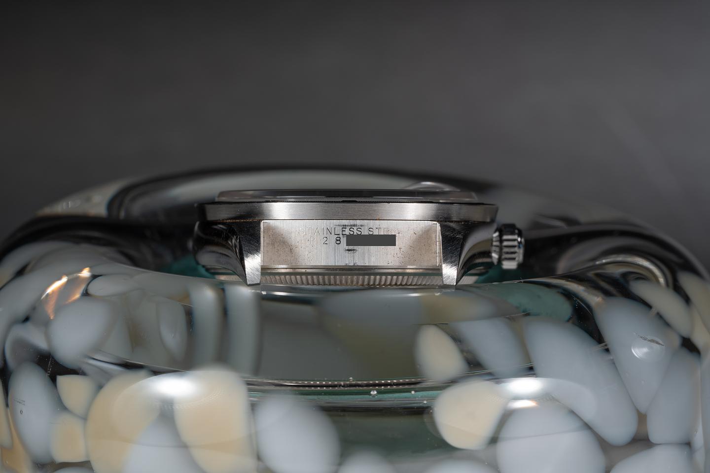 Case: The excellent 34mm case has just returned from polishing showing sharp symmetrical lugs. The freshly polished engine-turned bezel is also in excellent condition.