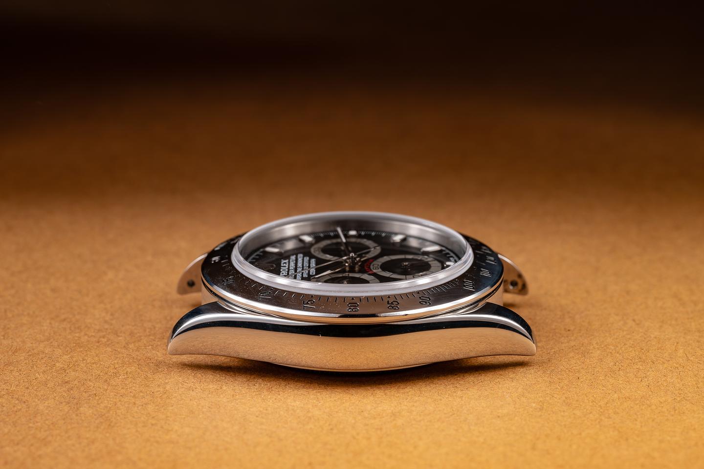 Dial: The glossy black dial is excellent, showing no visible wear. The original factory hands are matching.