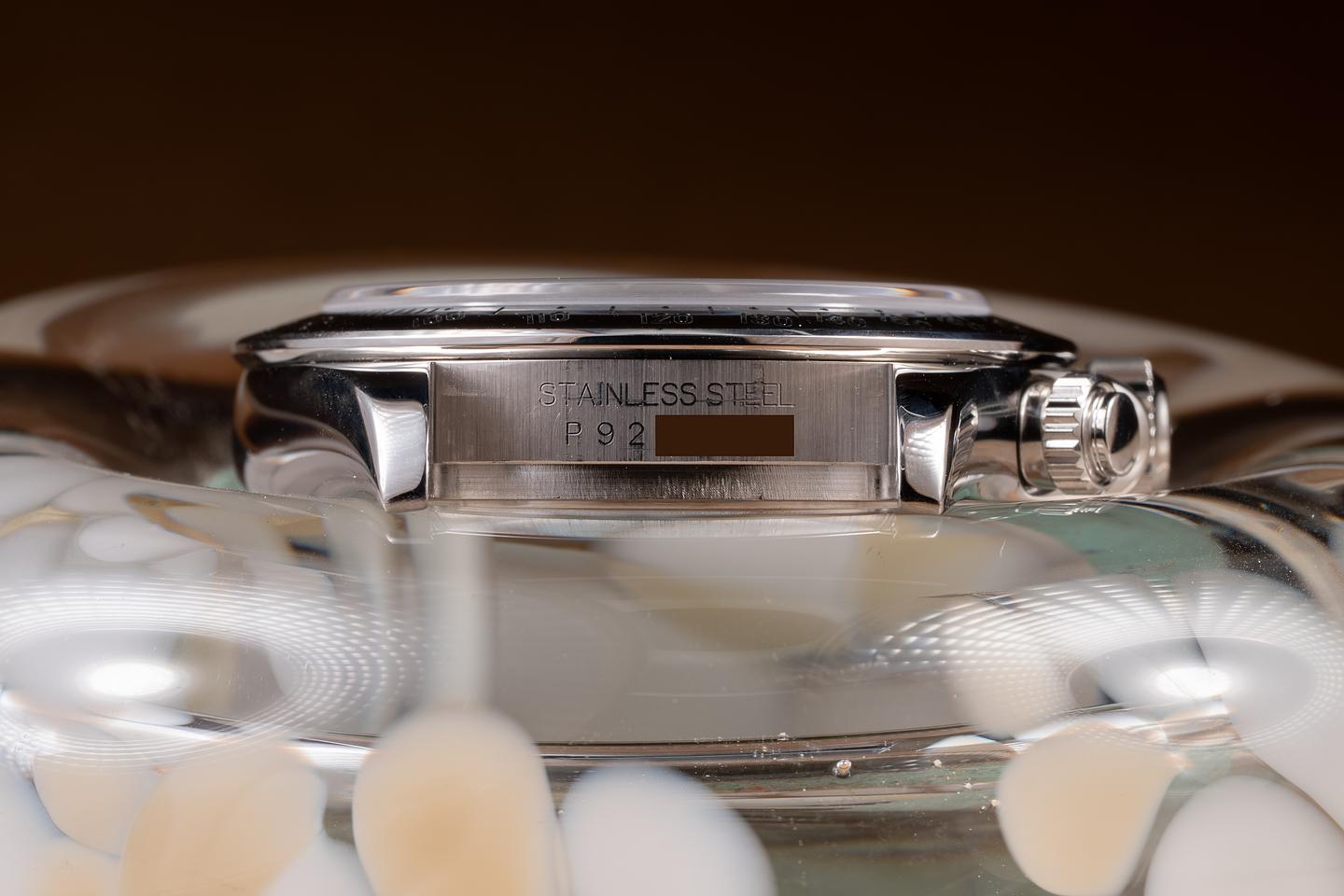 Case: The thick and even case is excellent, showing only light wear from use. The stainless bezel is also in excellent condition, showing only light wear from use.