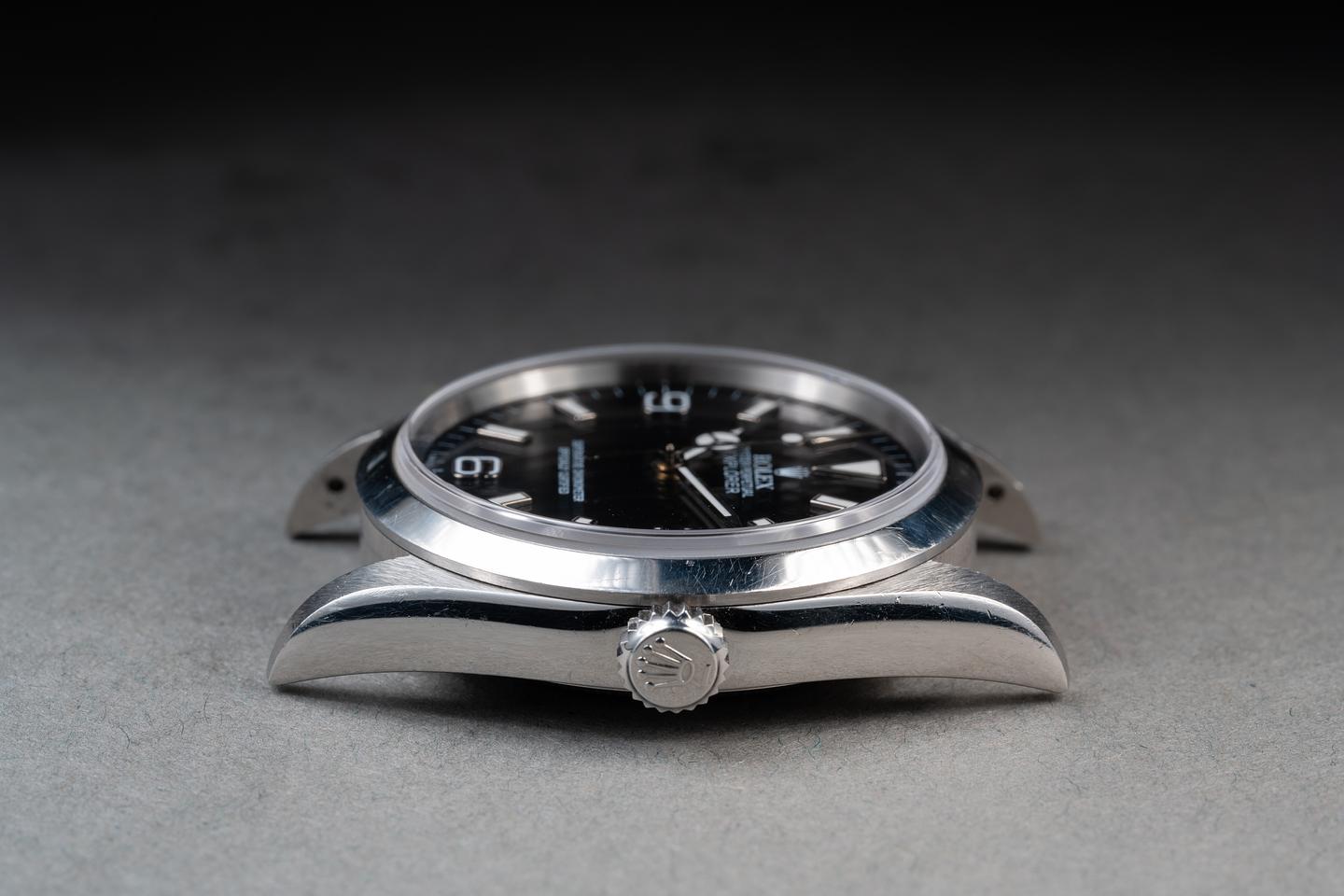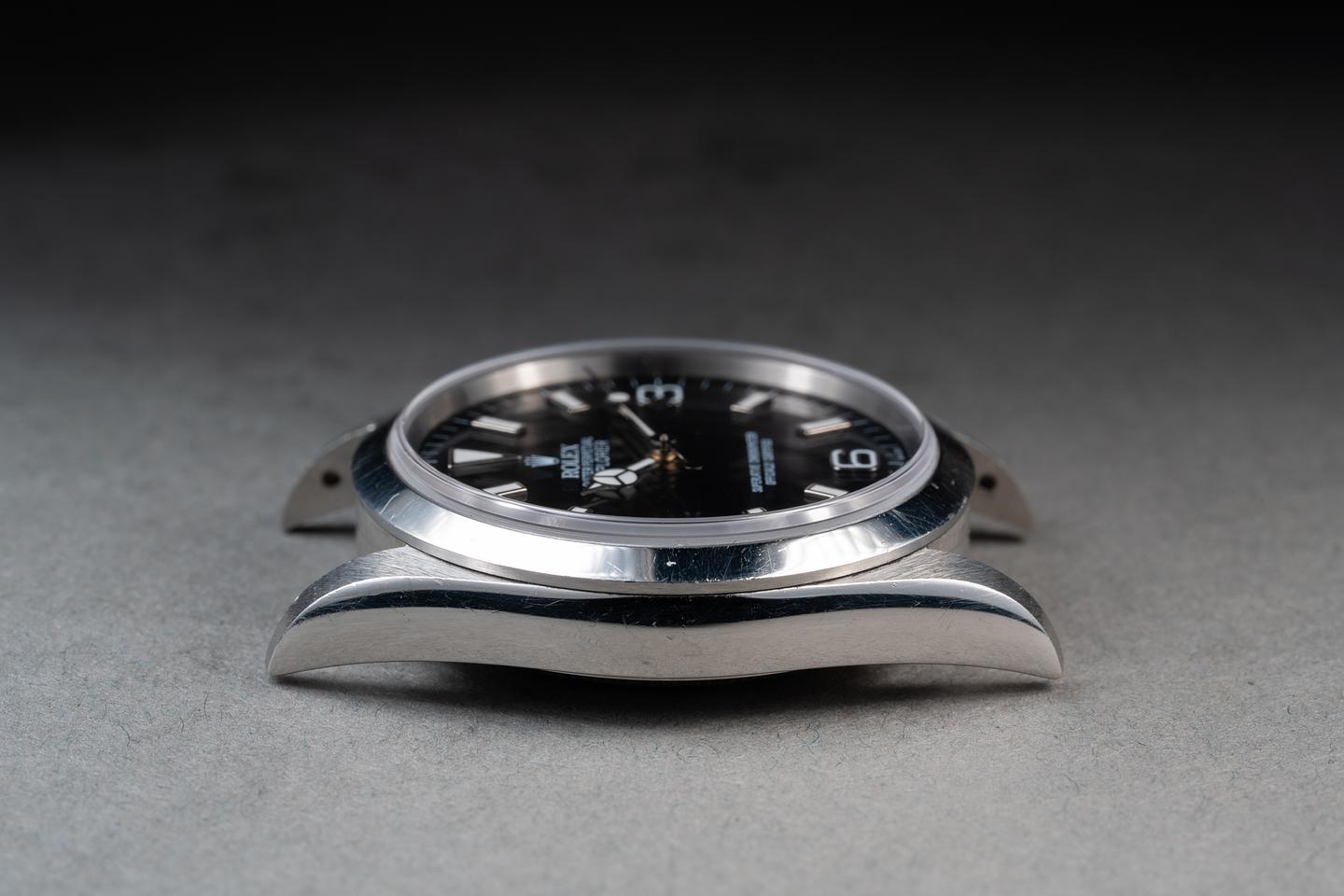 Case: The thick, sharp, and even 36mm case is excellent showing only very light wear. The smooth stainless bezel is also in excellent condition showing only very light wear from use.