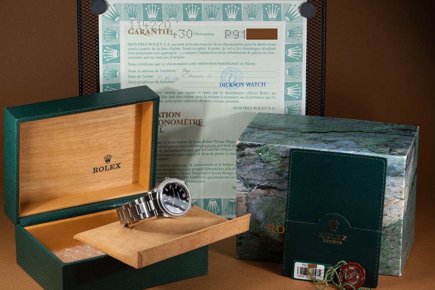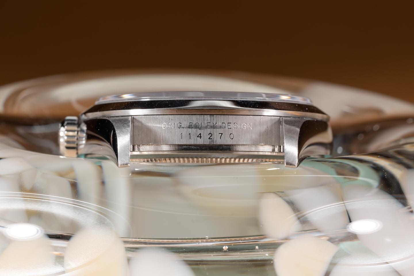 Bracelet: The 12 link oyster bracelet is excellent showing only very light stretch for its age. The clasp is stamped with a matching 2000 date code.
