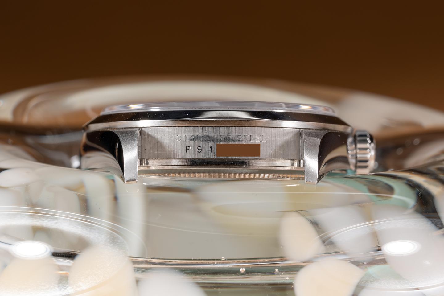 Dial: The glossy black 3, 6, 9 daily is excellent showing no visible wear. The original factory hands are matching.