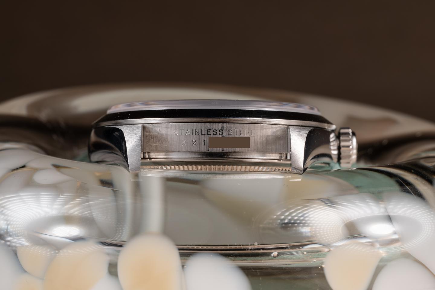 Dial: The glossy black 3, 6, 9 dial is excellent, showing no visible wear. The original factory hands are matching.