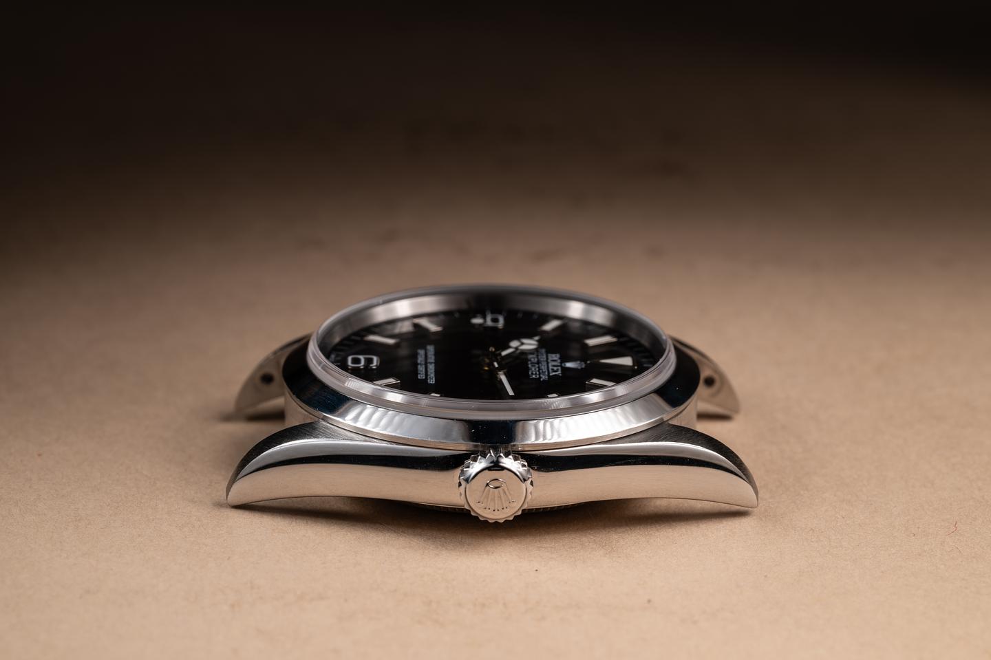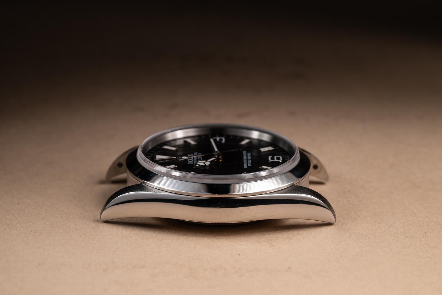 Case: The sharp 36mm case is excellent, showing only very light wear from use. The smooth stainless bezel is also in excellent condition, showing only very light wear from use.