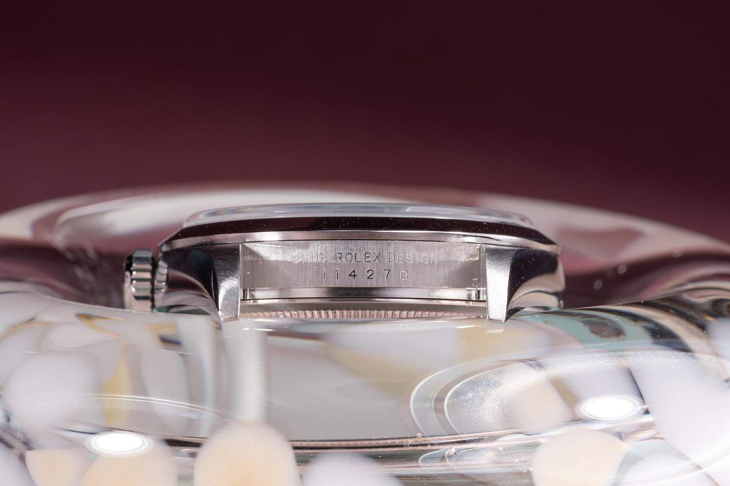 Bracelet: The 12 link oyster bracelet is excellent showing only extremely light stretch for its age. The clasp is stamped with a matching 2000 date code.