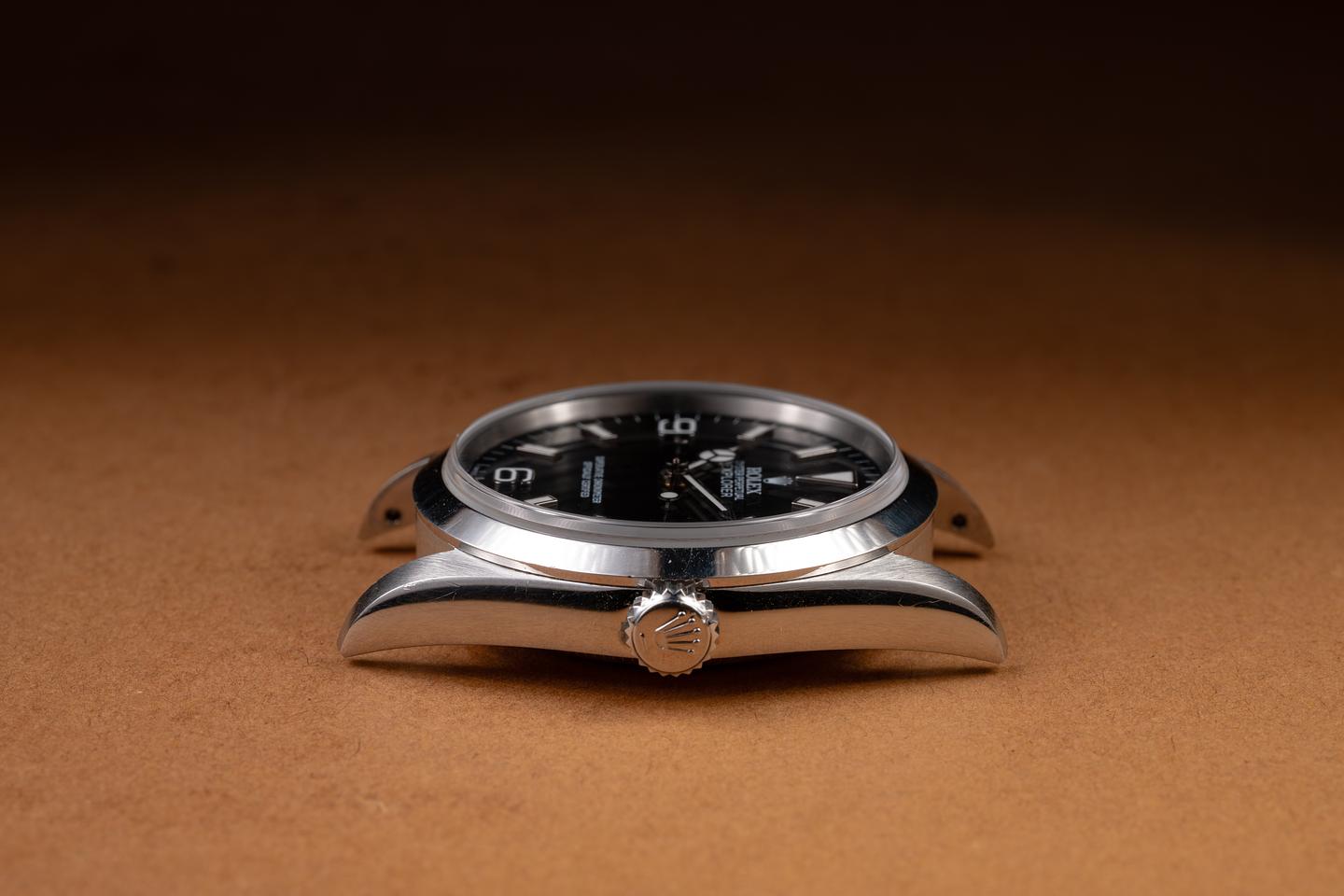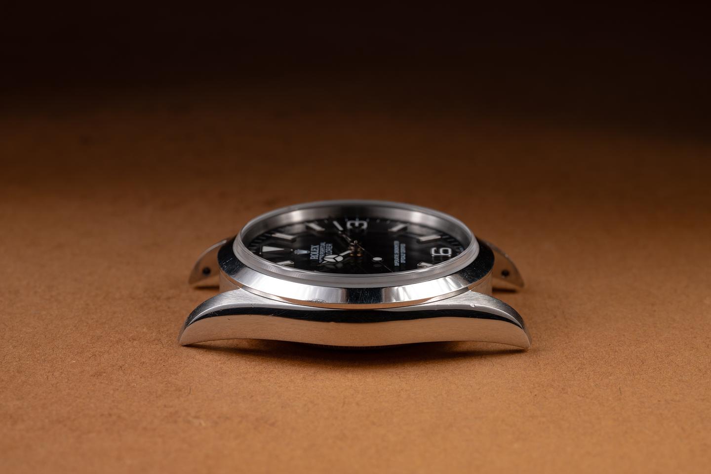 Case: The sharp 36mm case is excellent, showing only very light wear from use. The smooth stainless bezel is also in excellent condition, showing only very light wear.