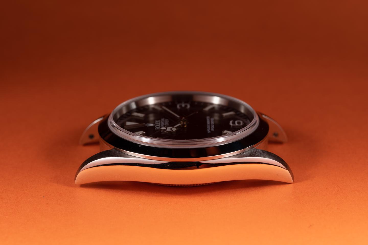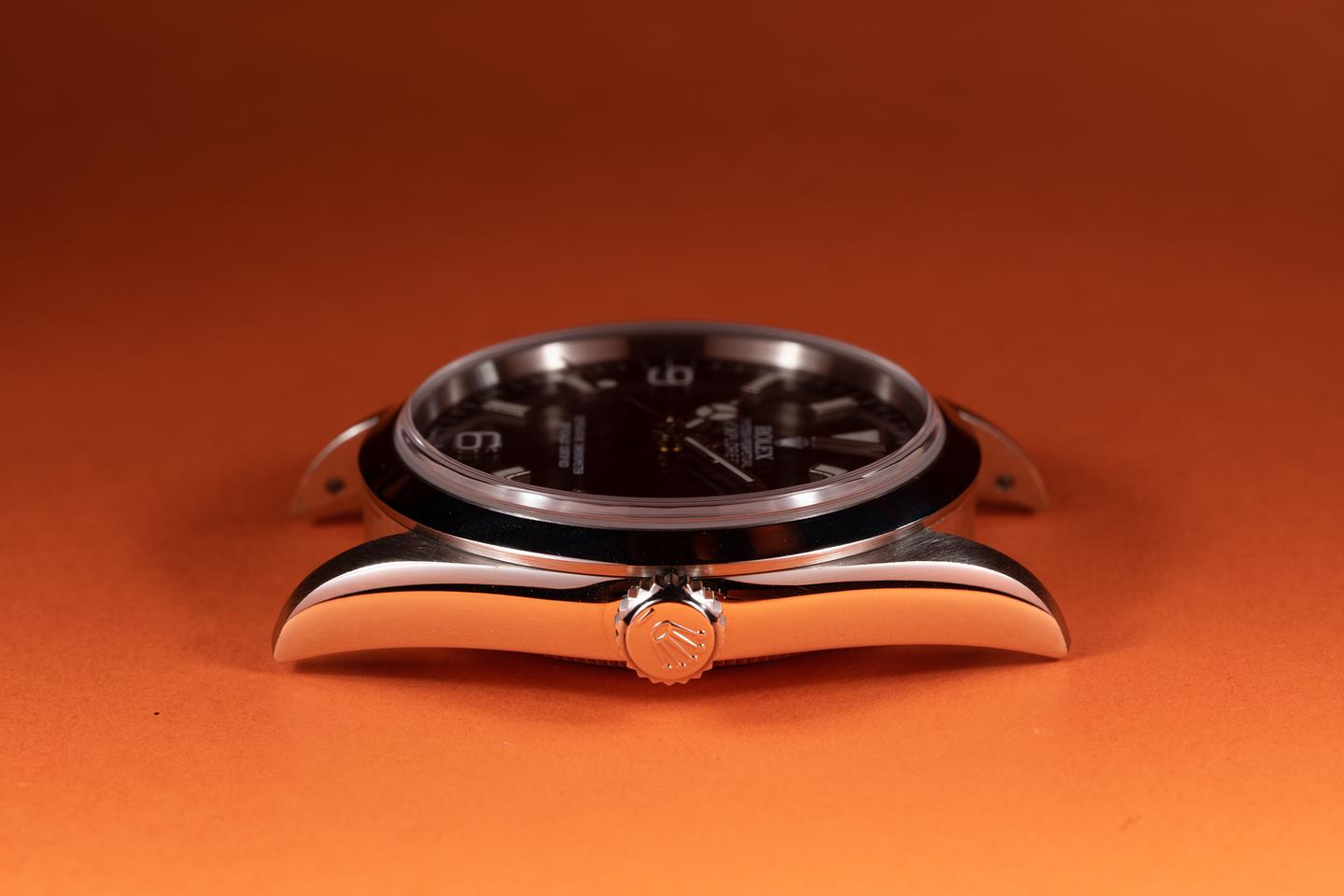 Case: The sharp 36mm case is excellent and has just returned from polishing. The freshly polished smooth bezel is also in excellent condition.