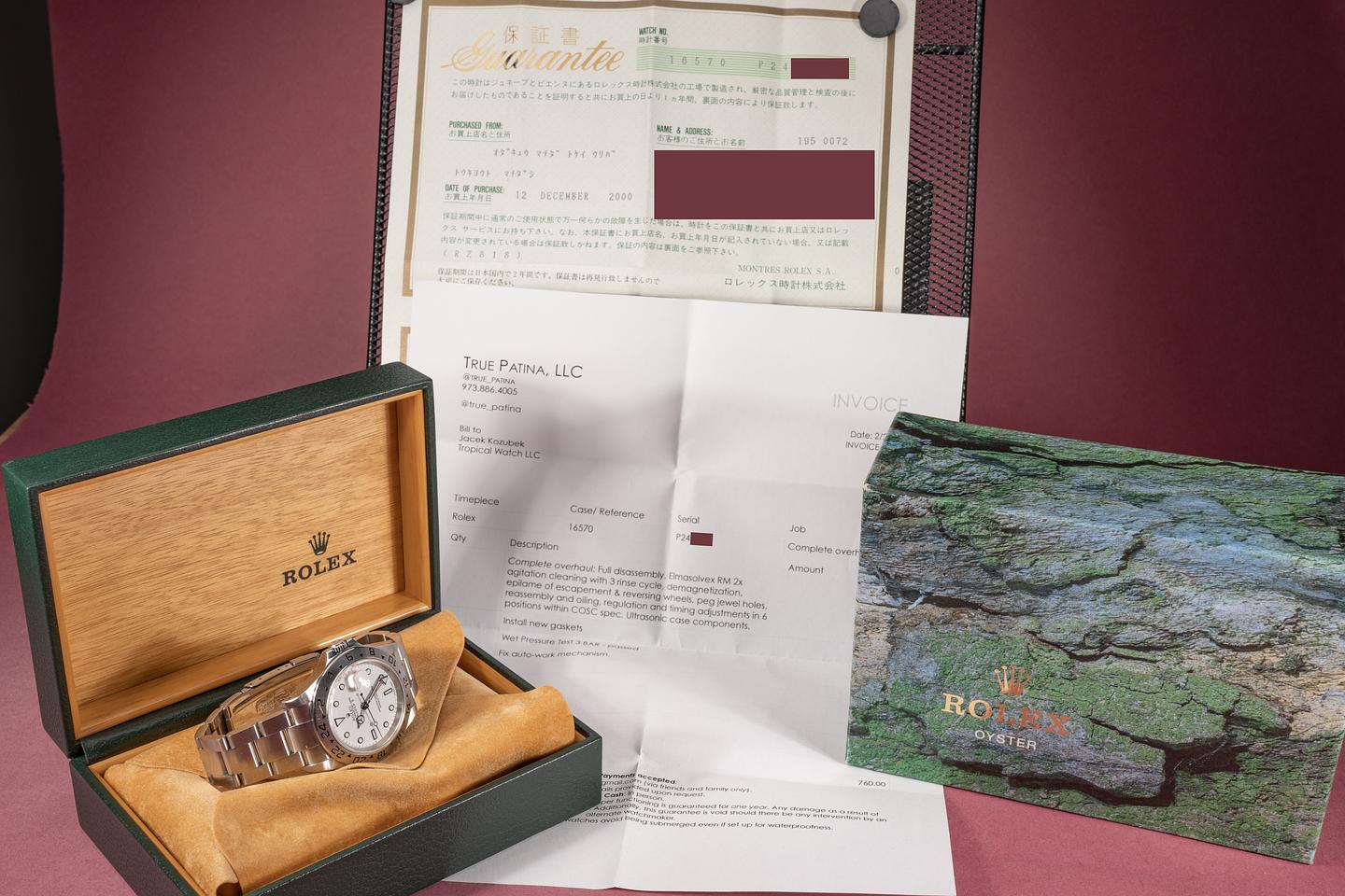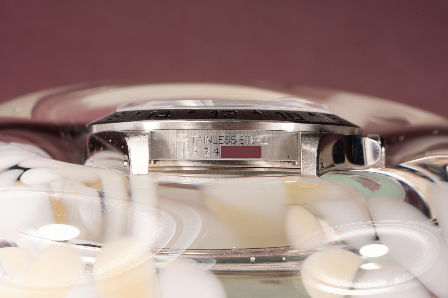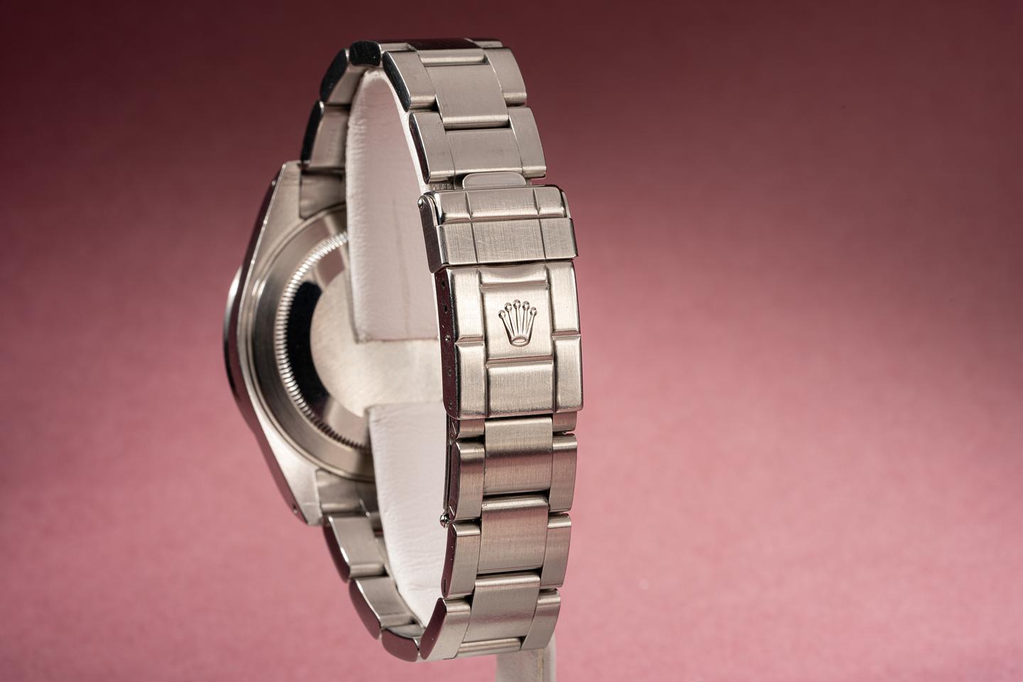 Bracelet: The 12 link oyster bracelet is excellent and shows only light stretch for its age. The clasp is stamped with a matching 2000 date code.
