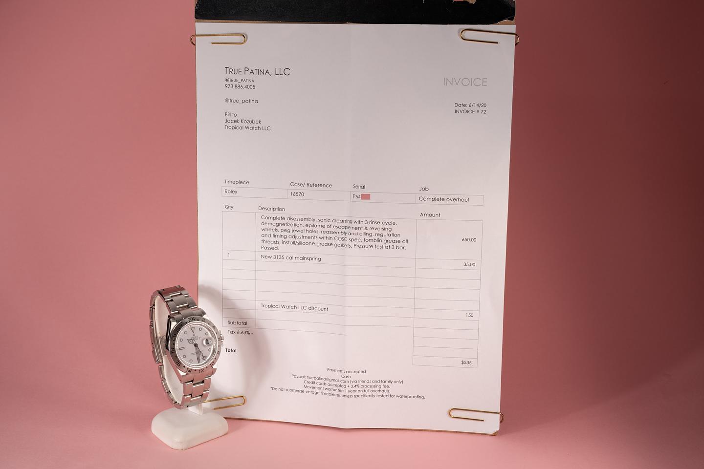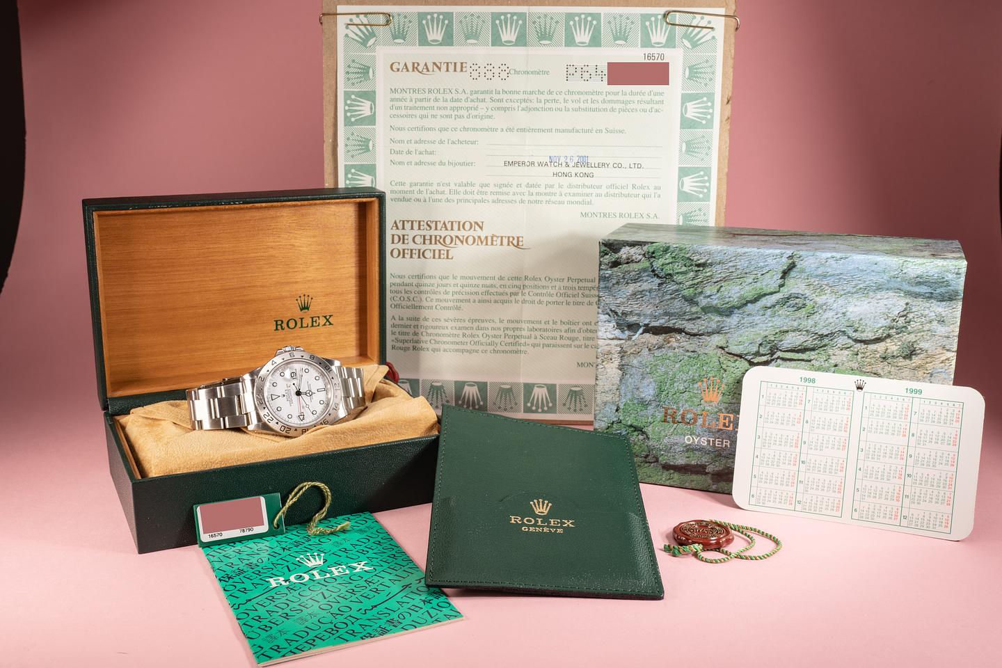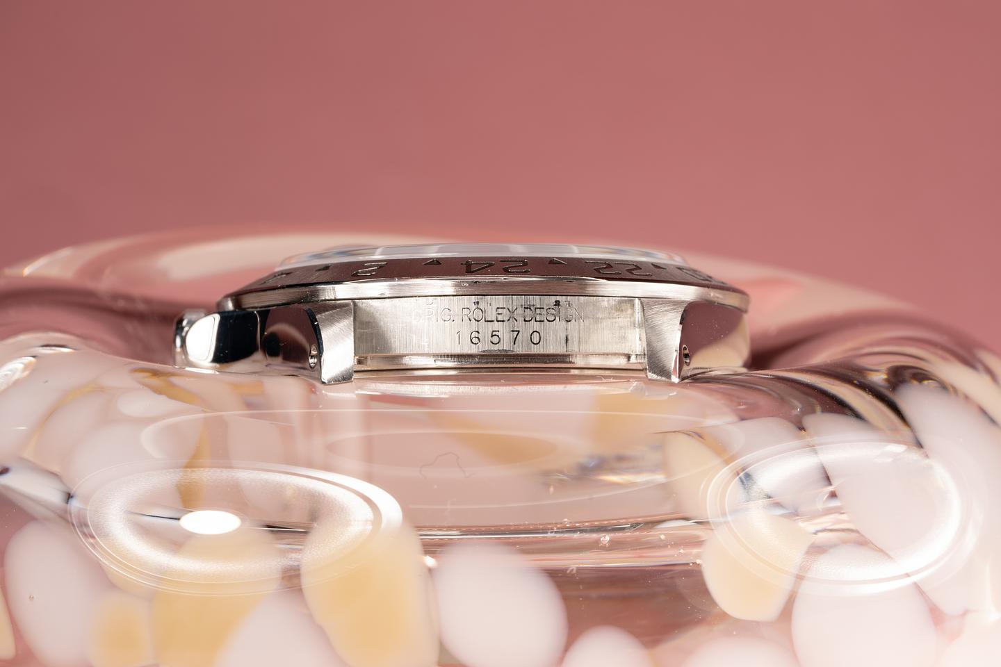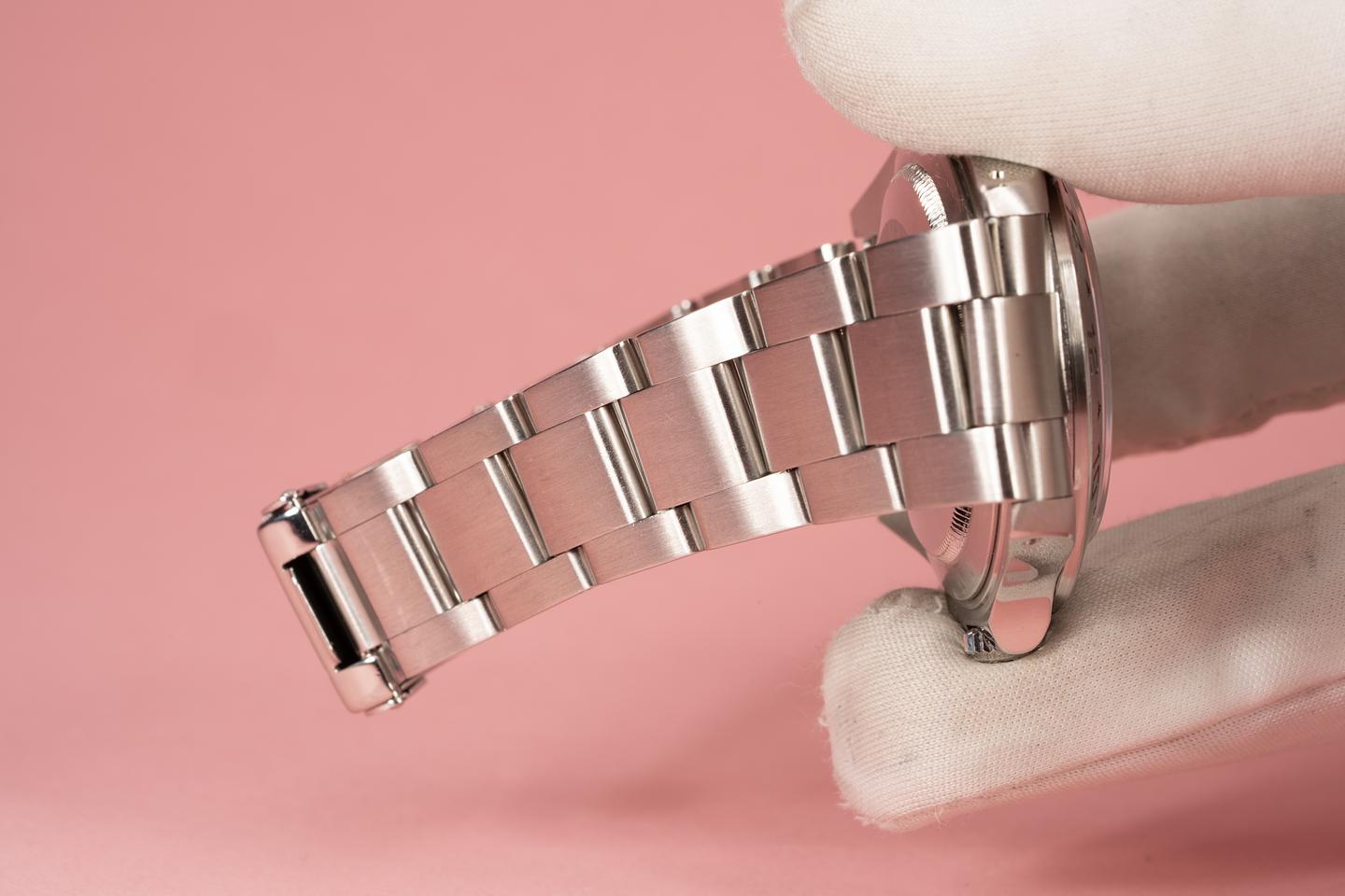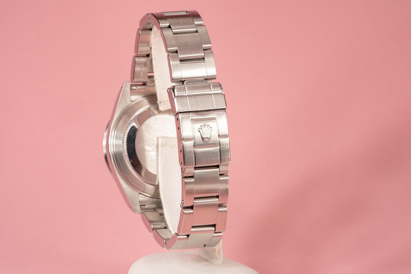Bracelet: The 12 link oyster brcelet is in very good condition and has moderate stretch for its age. The clasp is stamped with a 2001 date code.