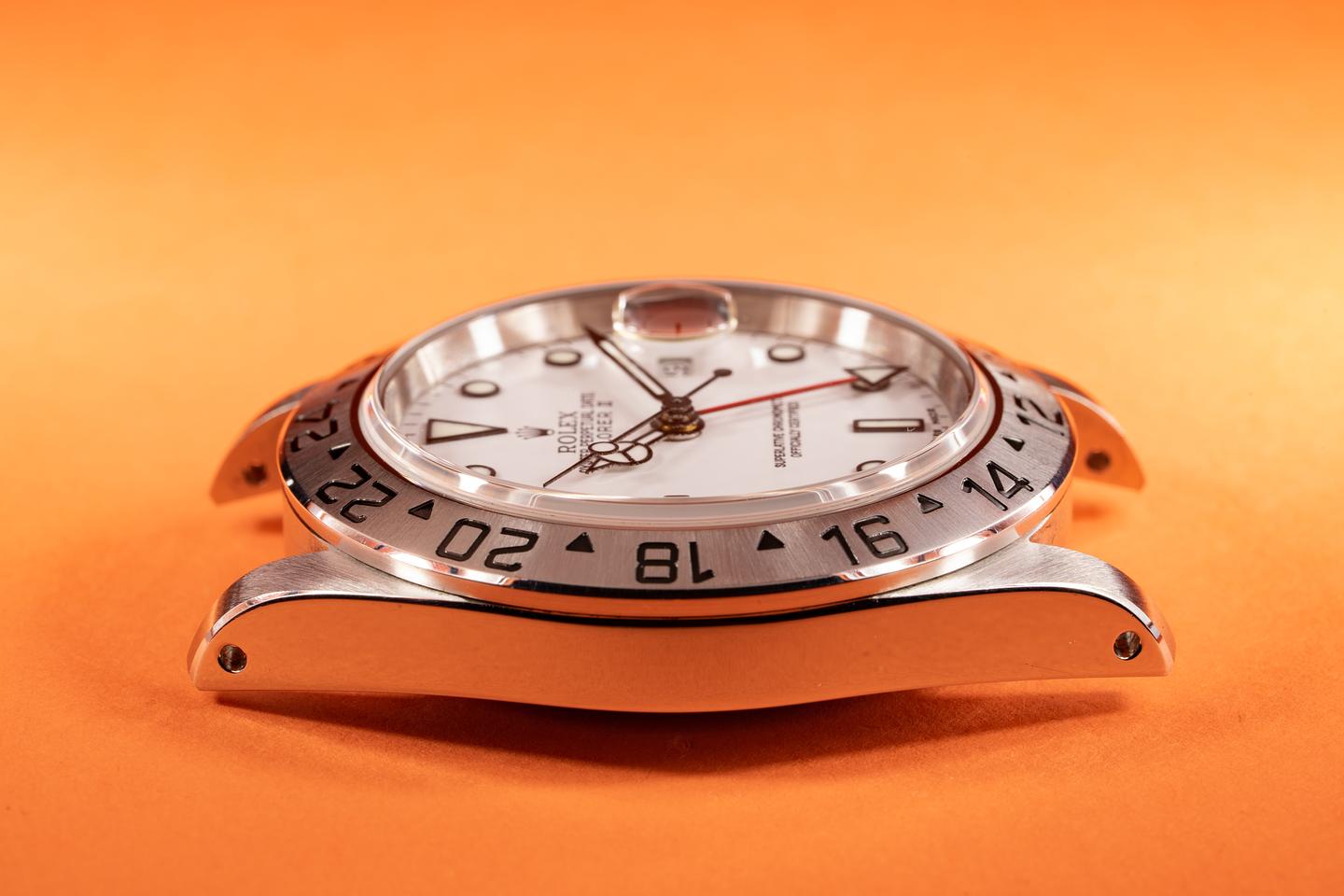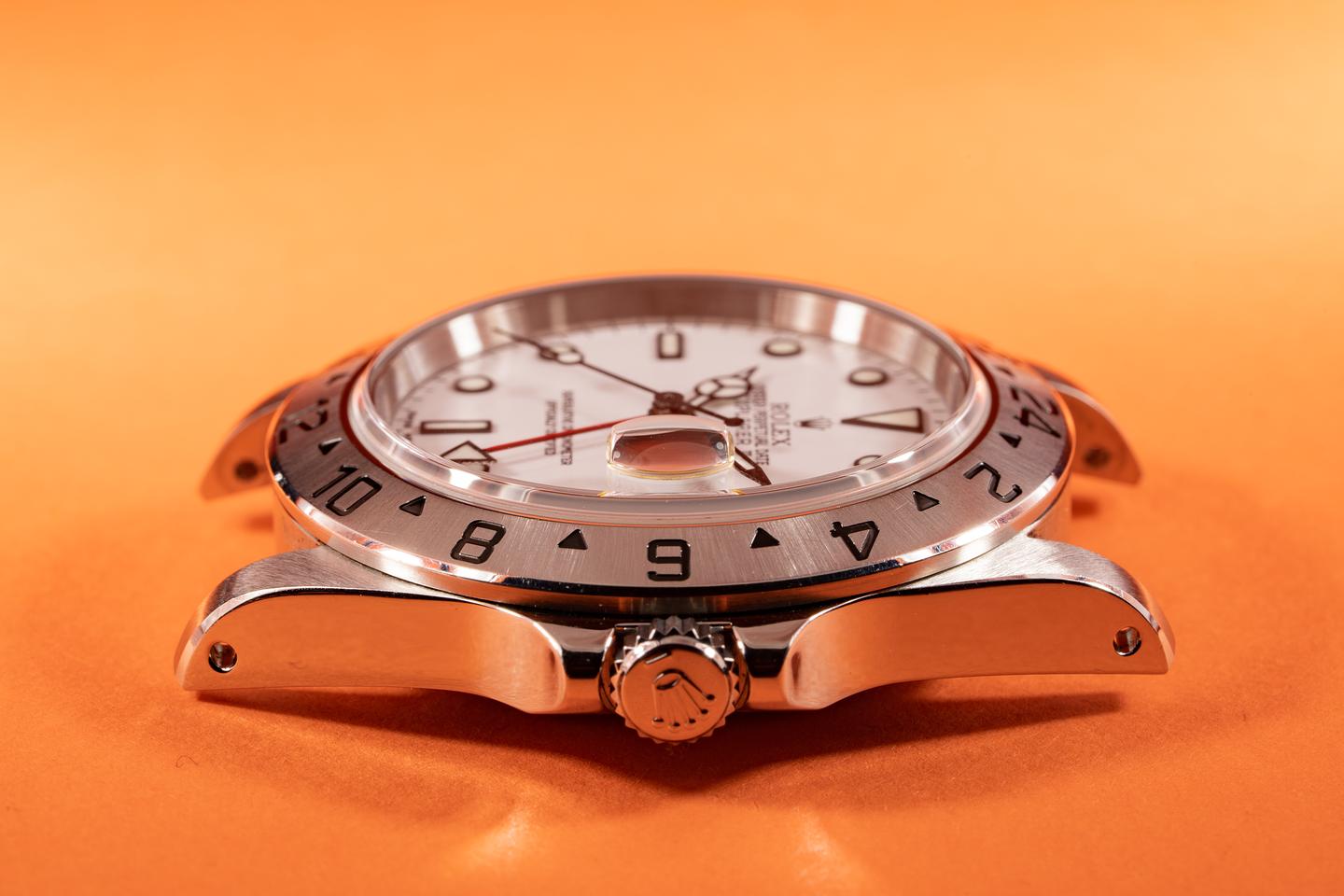 Case: The recently polished case is excellent showing sharp prominent bevels and only light wear from use. The stainless bezel is also excellent showing a sharp and well defined sunburst finish.