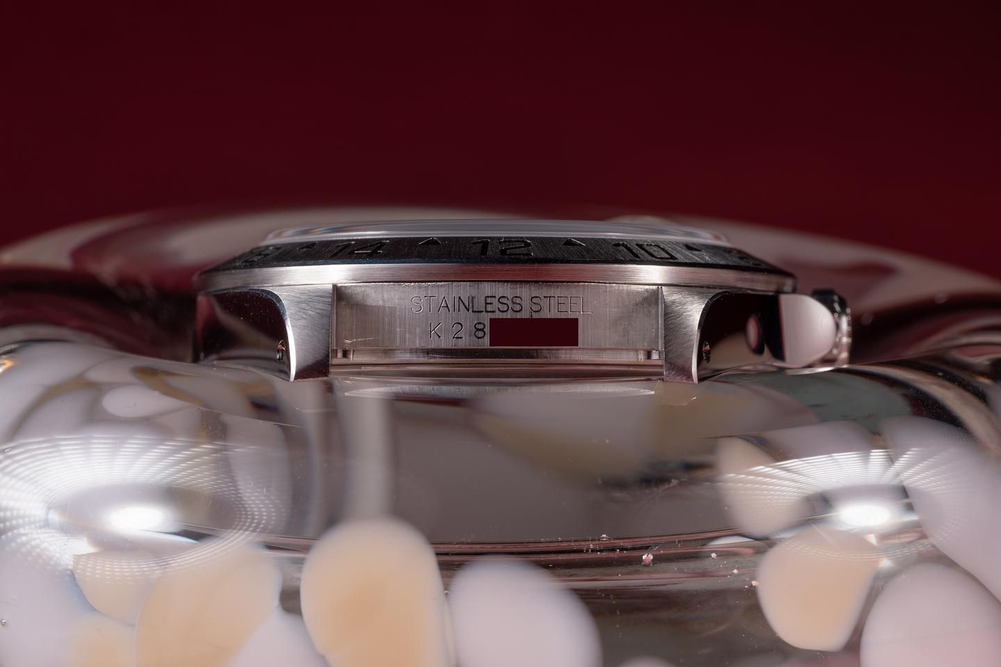 Case: The previously polished case is excellent, showing some light wear from use. The stainless bezel is also in excellent condition, showing a sharp well well-defined sunburst finish.